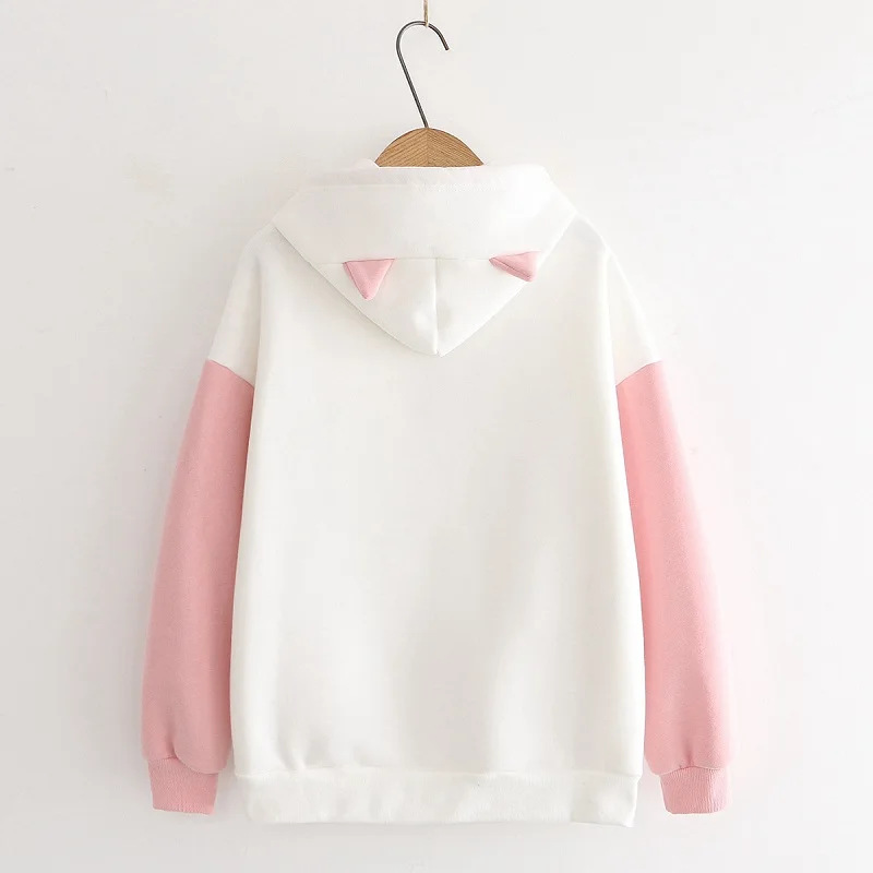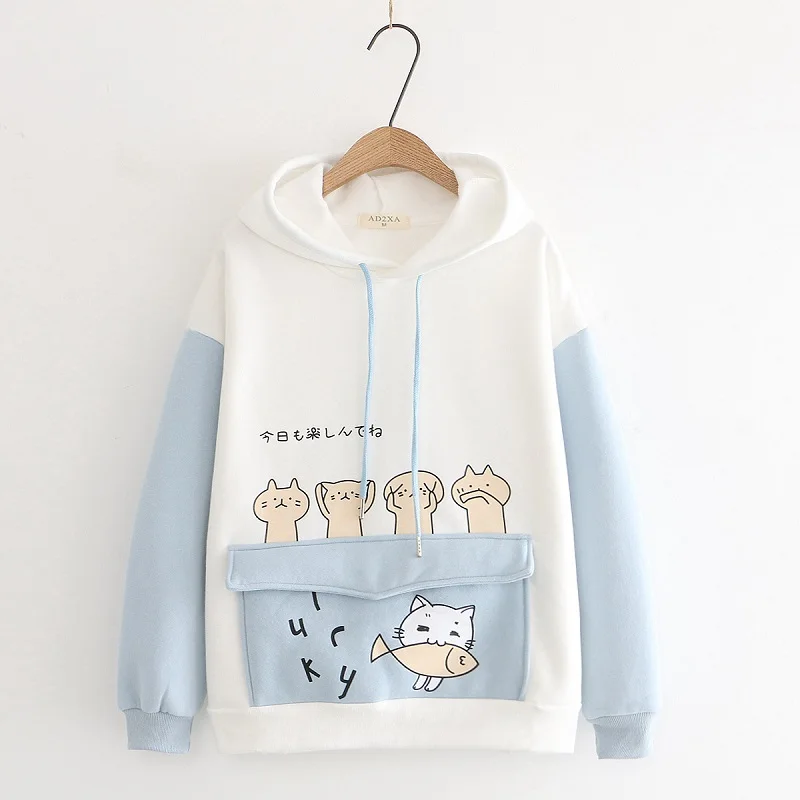 ZOGAA 2021 для женщин Harajuku с рисунком кота из мультфильма толстовки и свитеры из хлопка с плюшевой подкладкой с капюшоном толстовка с ушками на капюшоне, пуловеры с карманами