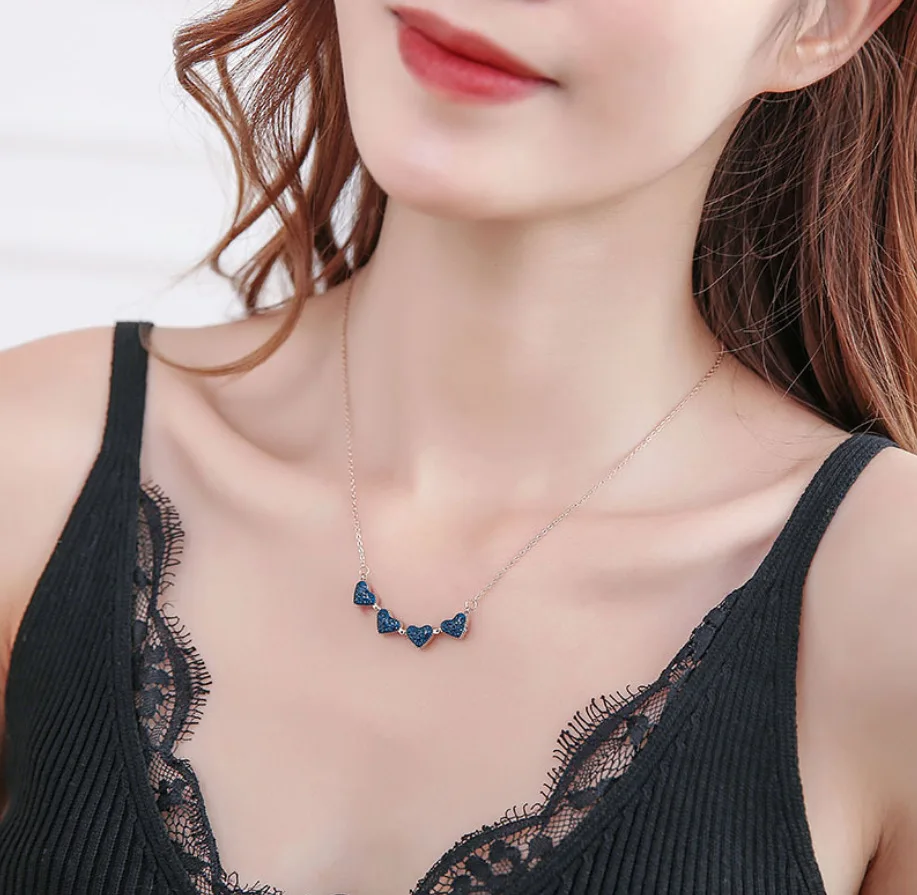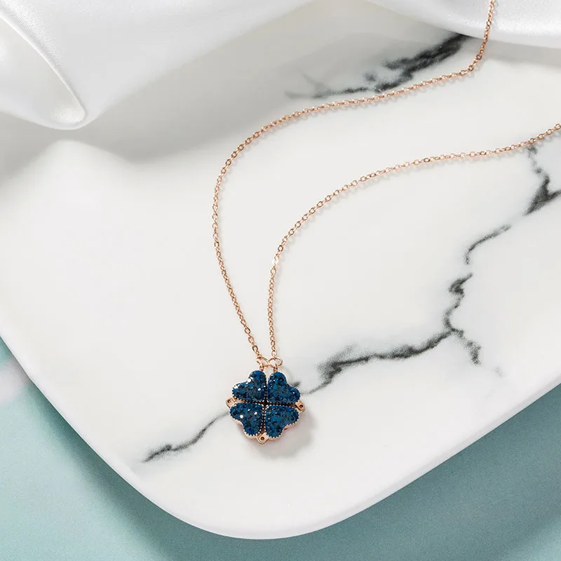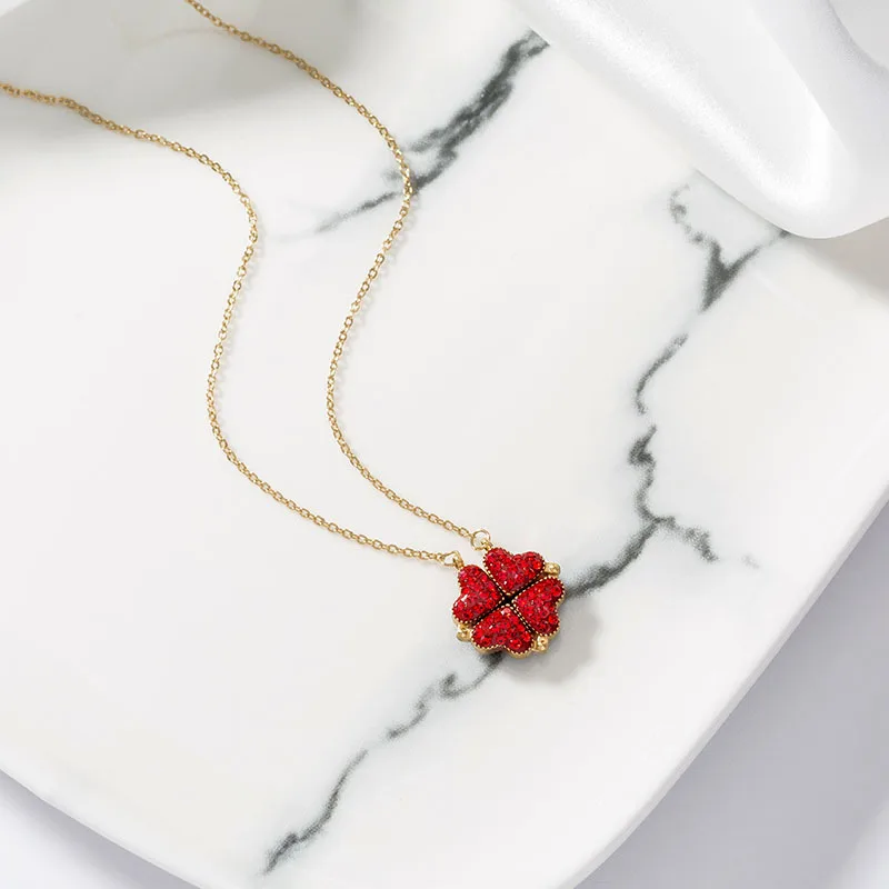 Модное женское ожерелье из нержавеющей стали для девушек креативная красная черная двухсторонняя цепочка с четырьмя сердцами и травой на удачу до ключиц ожерелья
