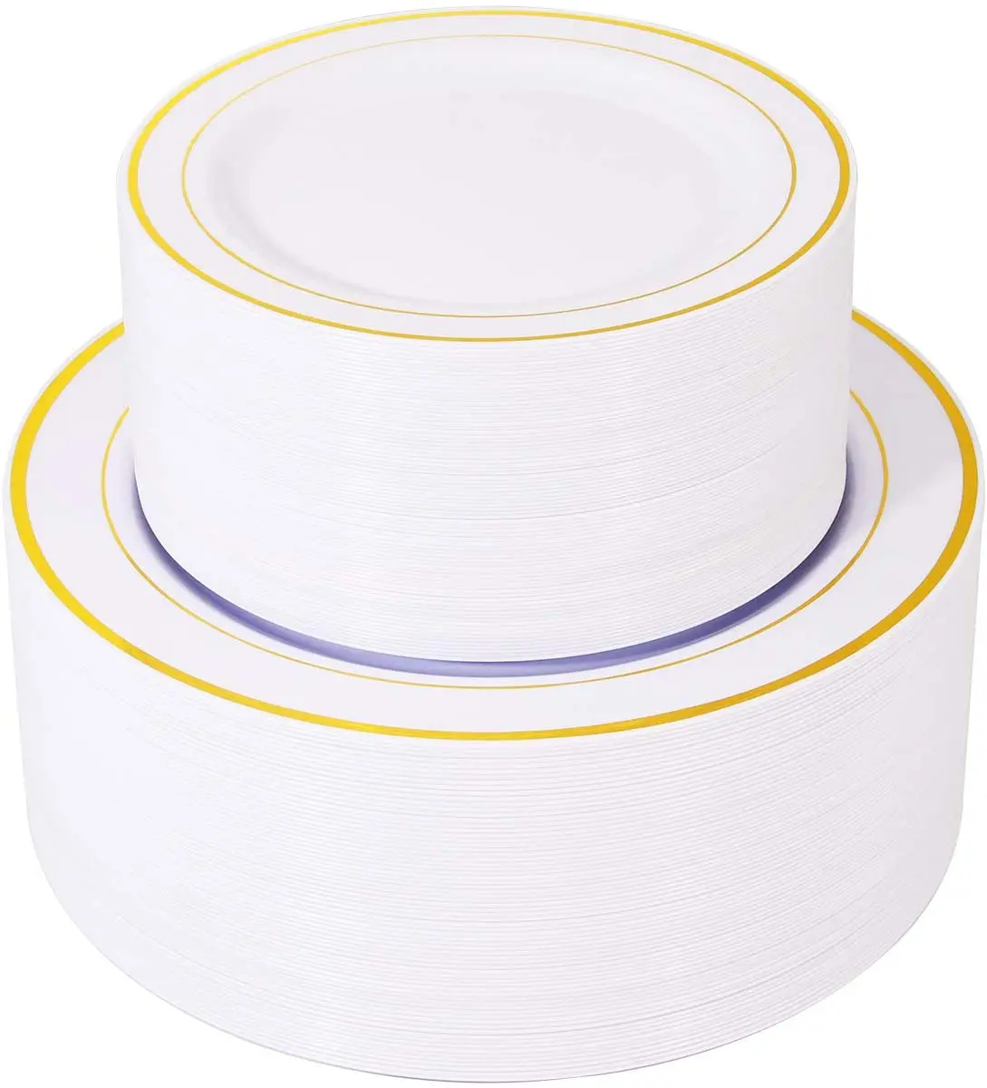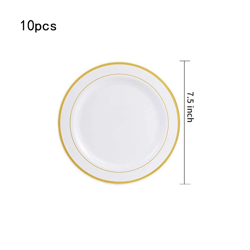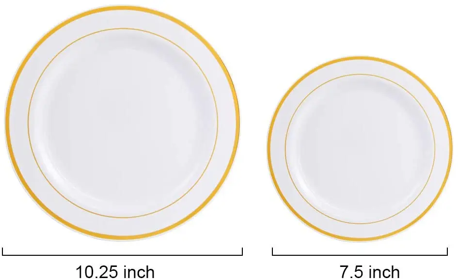 Золотые пластиковые тарелки, 50 шт., белые одноразовые тарелки с золотой окантовкой, включают: 25 обеденных тарелок 10,25 дюйма, 25 десертных тарелок 7,5 дюйма