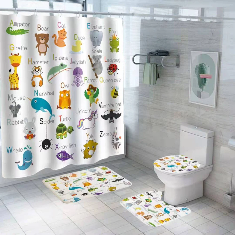 ABC обучения алфавита для Шторы, комплект из 4 предметов одежды с рисунками зверей из мультфильмов Алфавит душ Шторы для образования детей Детская домашняя Ванная комната Декор