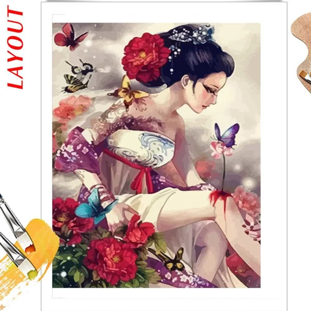Картина по номерам AZQSD, кимоно сделай сам с рамкой, Женская Ручная роспись, современное настенное искусство, Раскраска по номерам, наборы японских гейш, уникальный подарок