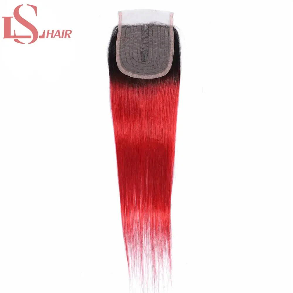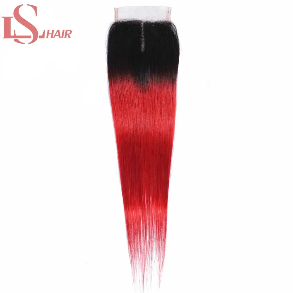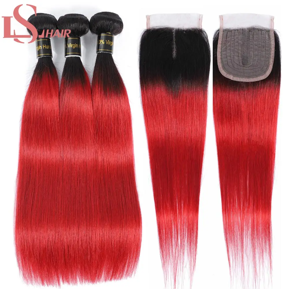 LS Омбре пряди с закрытием темные корни Омбре 1B/красные человеческие волосы бразильские прямые волосы 3 пряди красных пряди с закрытием Реми