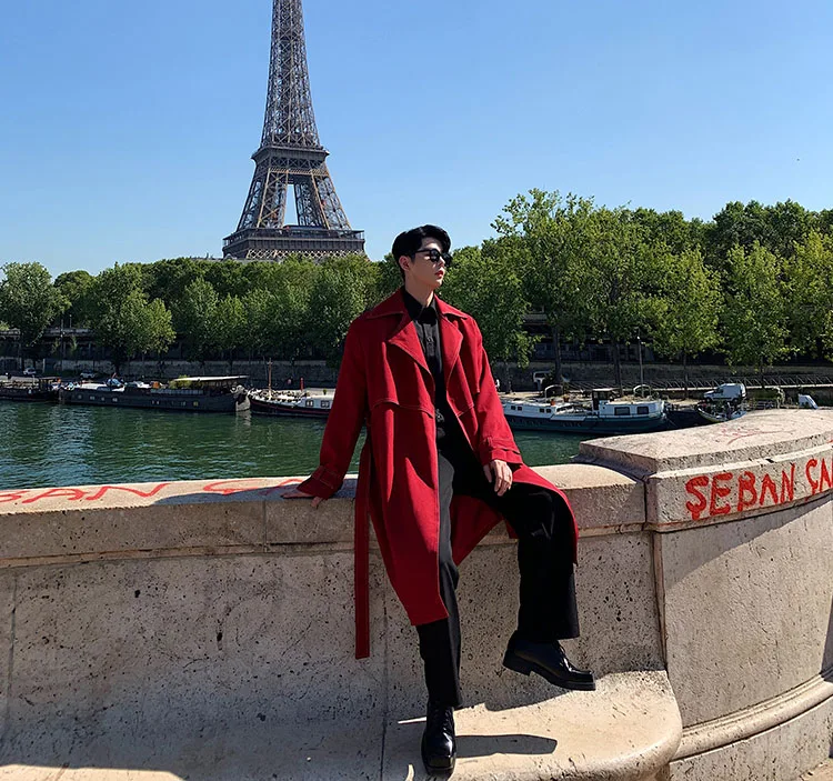 Куртка-тренчкот МужскаяЖенская, длинная, свободная, в стиле хип-хоп, красная ветровка, 2021