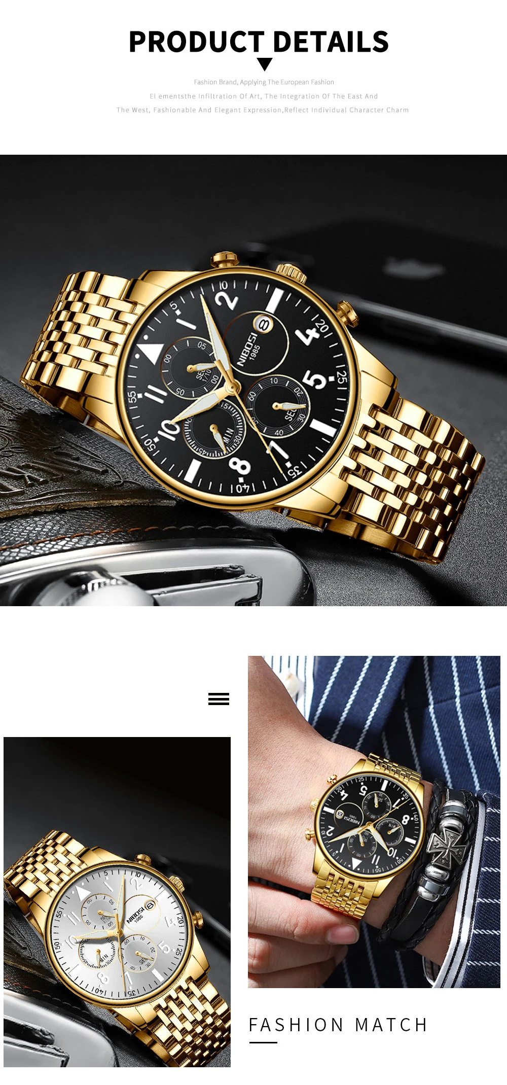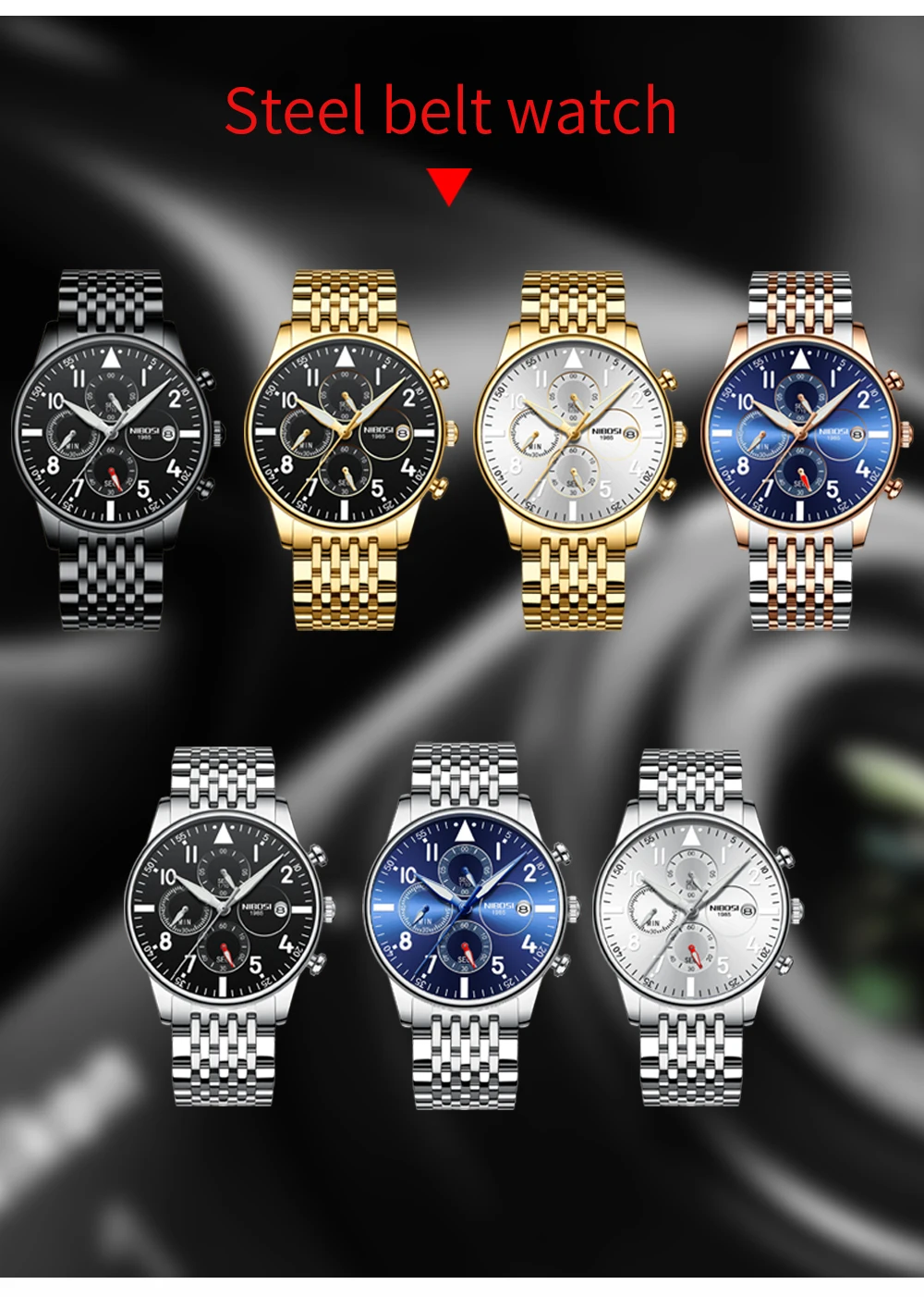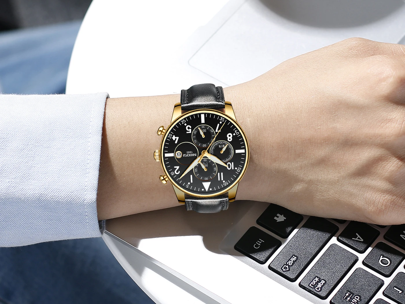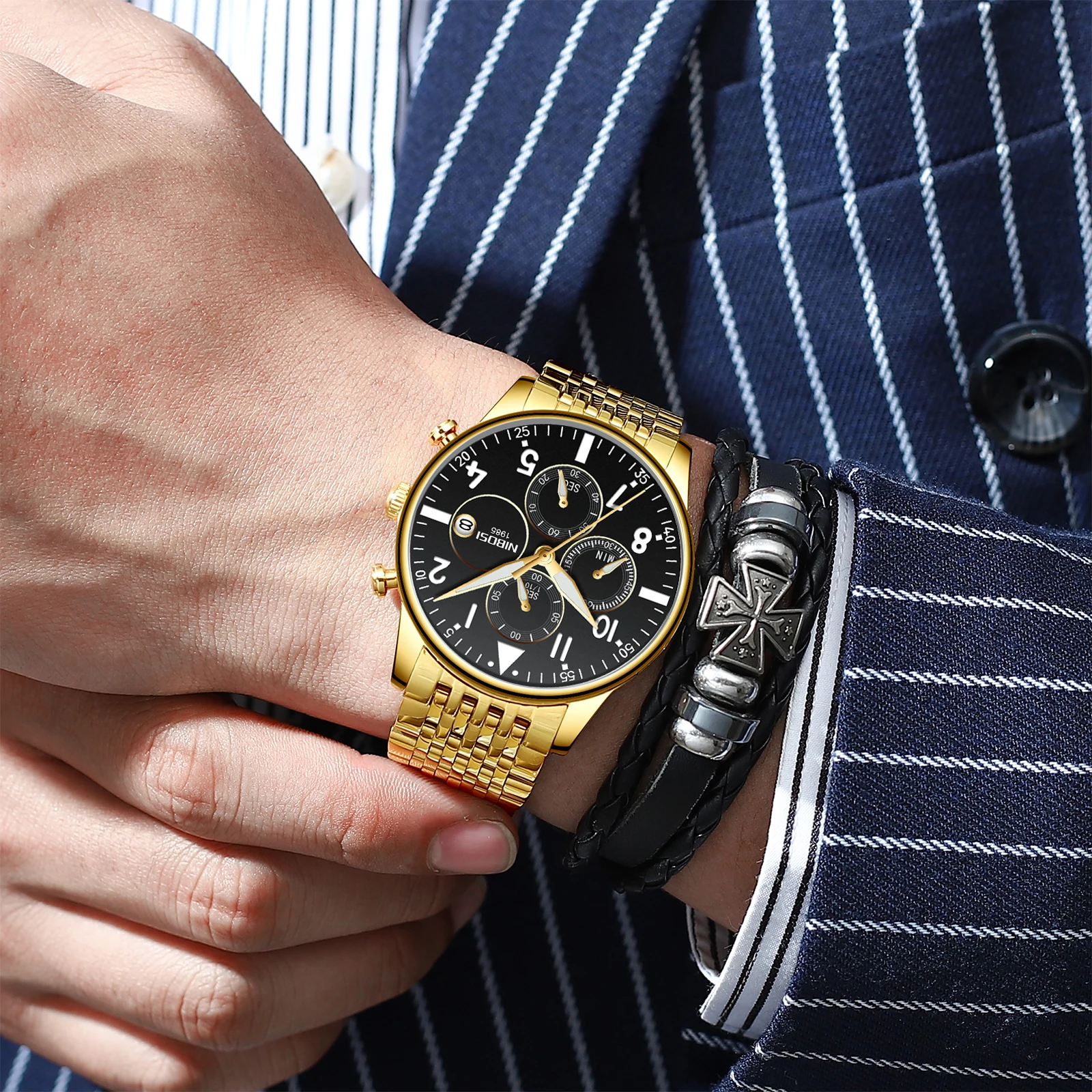-1 x часы NIBOSI-1 x коробка NIBOSI-1 Инструкция-1 х ткань для чистки часов-1 гарантийный талон-1 инструмент для регулировки ремешка