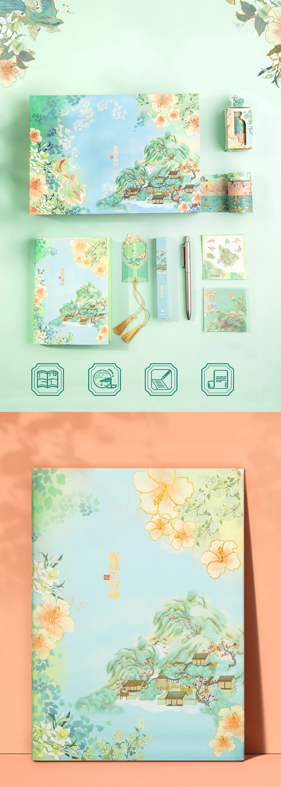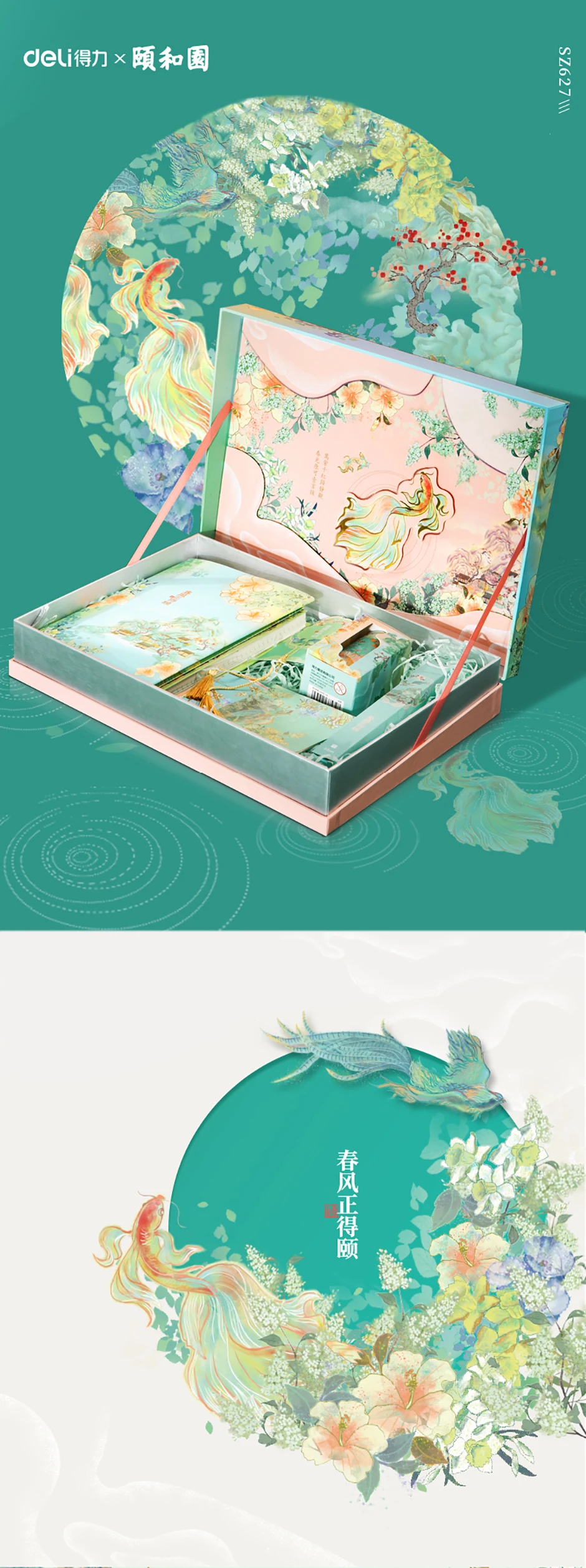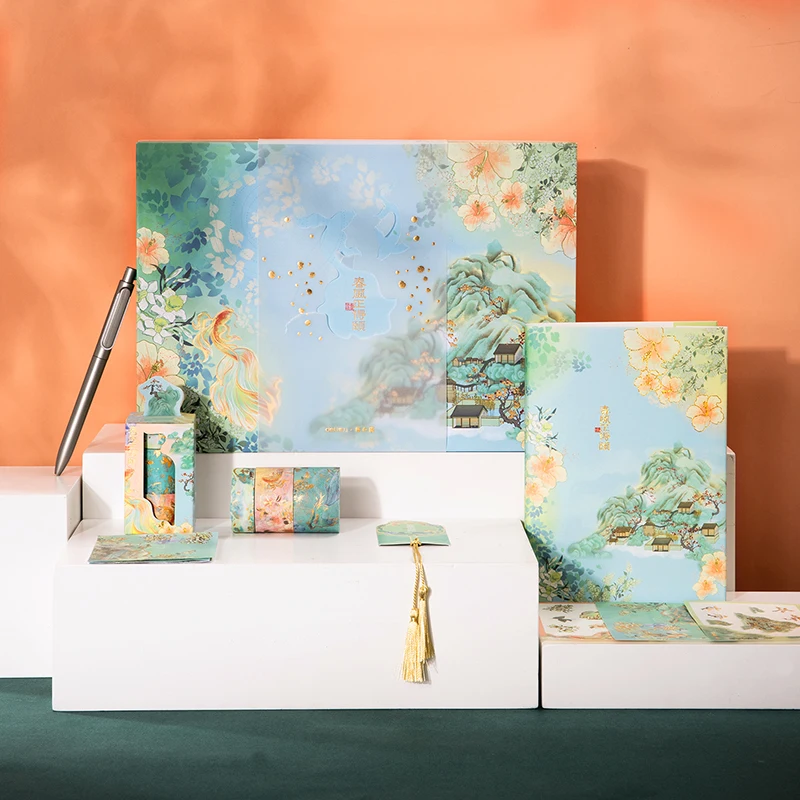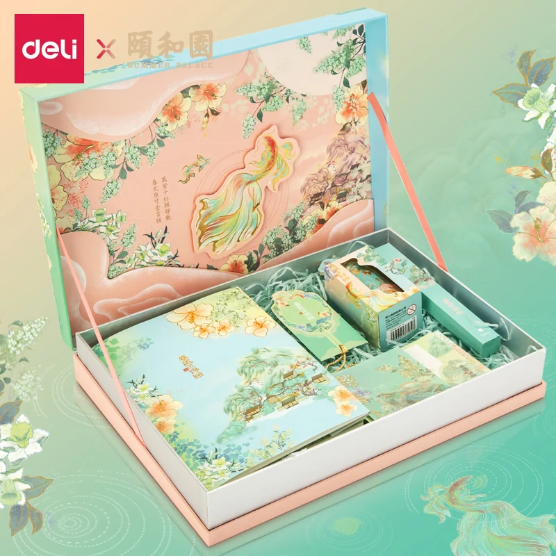DELI летний дворец серии записная книжка клейкая лента Подарочная коробка Канцелярский набор SZ021 Китай древний стиль студенческий подарок Канцтовары