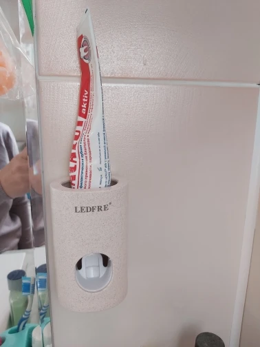 Простой в установке дистрибьютор с очень положительным моментом нет необходимости в батареях Единственным недостатком является то, что он скорее соответствует ручной зубной щетке, потому что с электрической щеткой зубная паста часто падает на ручку, а не на щетке, которая не такая широкая
