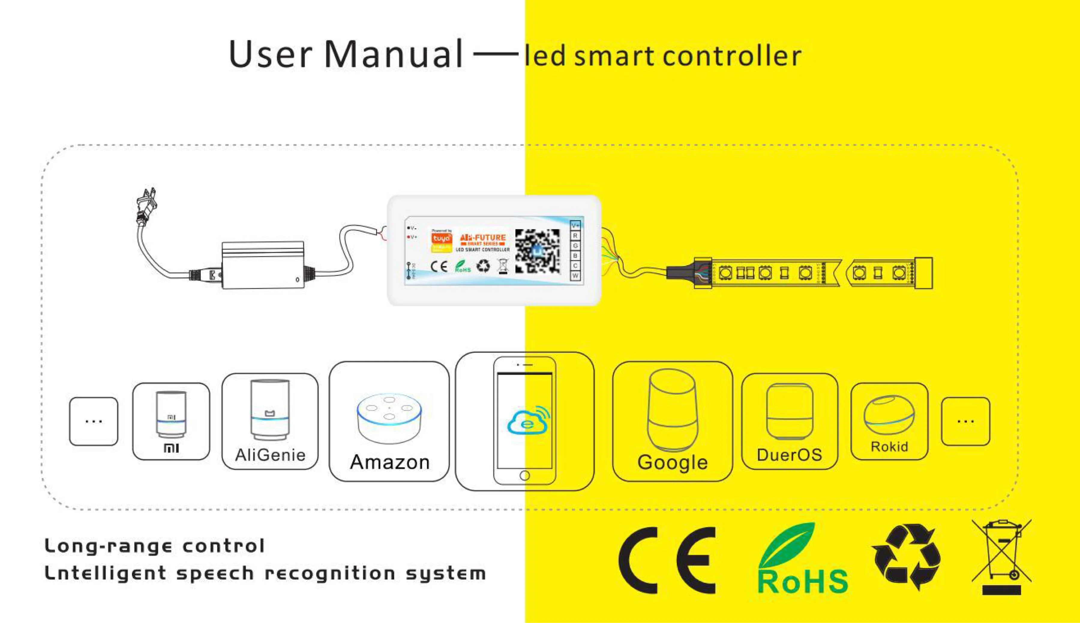 Wi-Fi умный контроллер Alexa Google Home Voice ОдноцветныйCCTRGB + ...