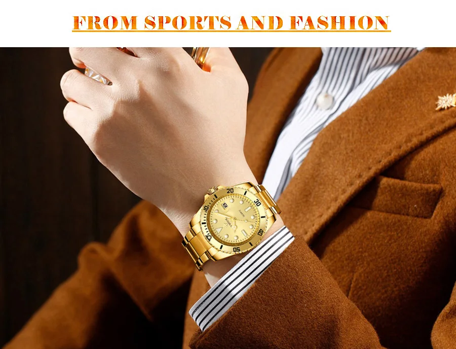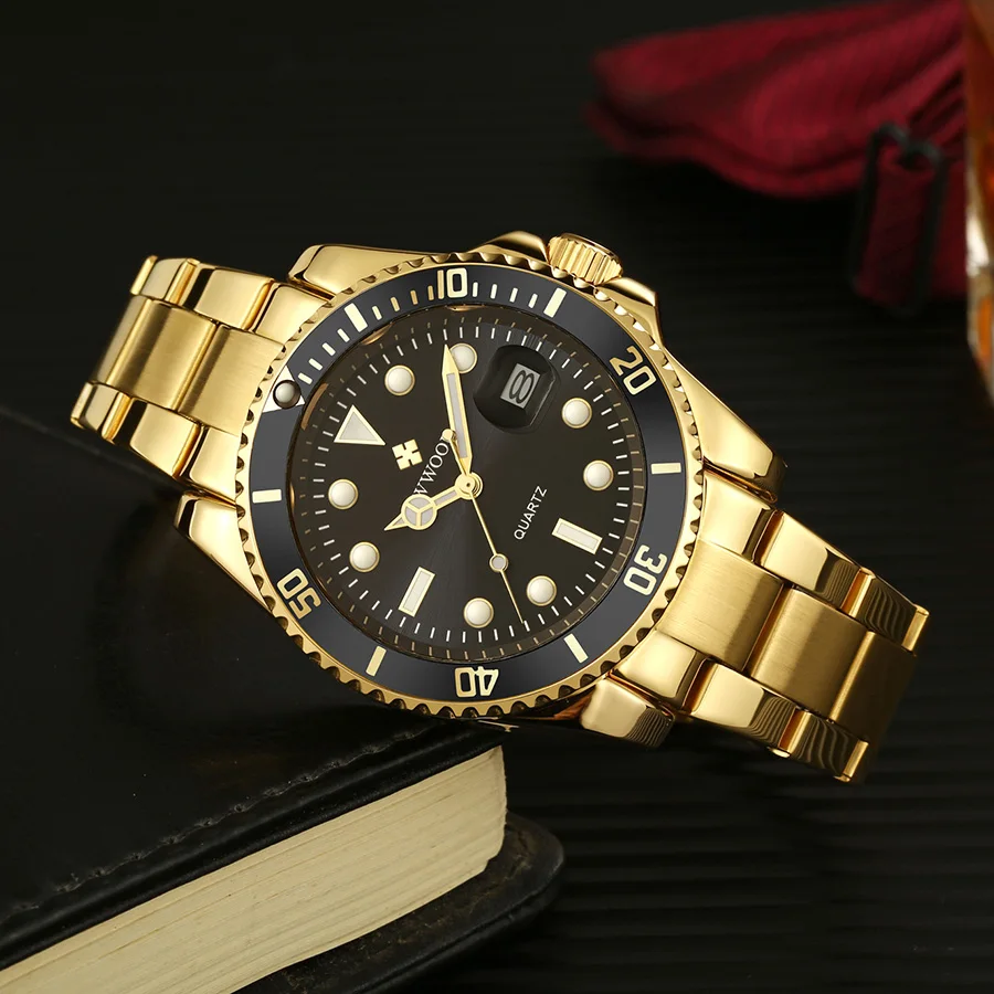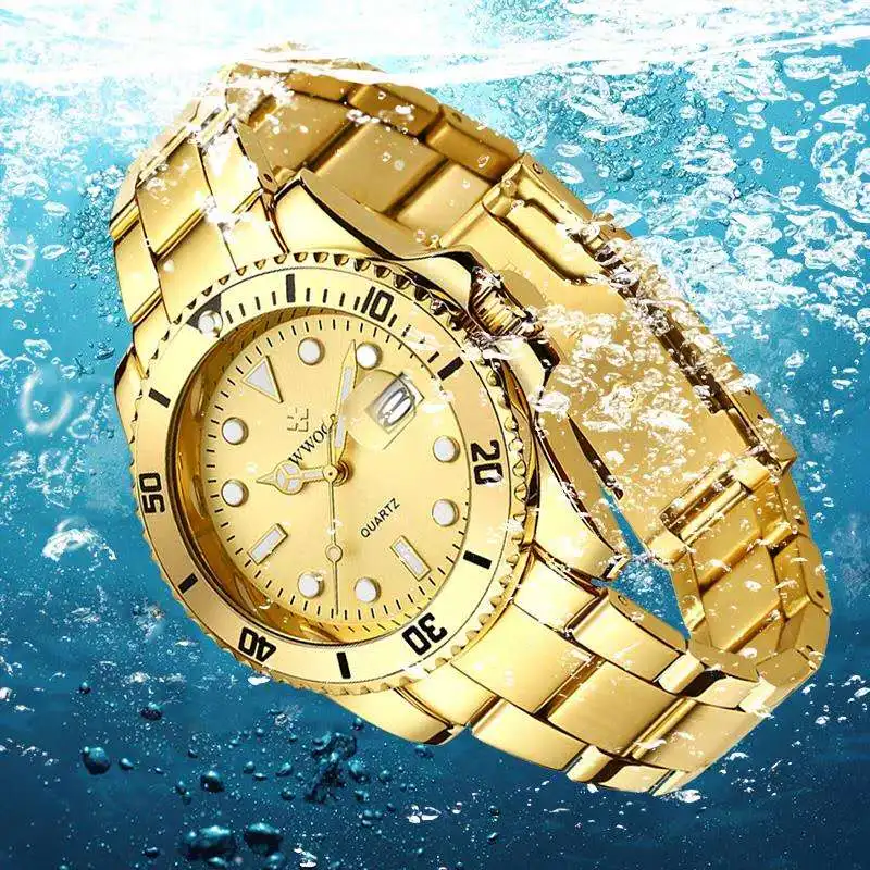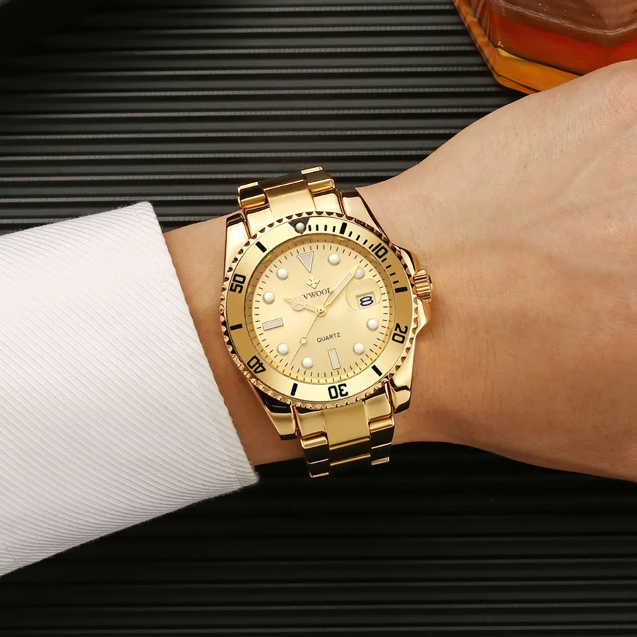 Часы WWOOR мужские наручные кварцевые, роскошные модные, водостойкие до 30 атм, спортивные золотистые, с датой