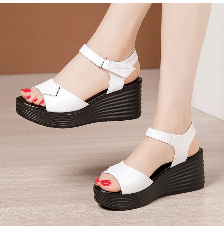 Сандалии женские на платформе и толстой подошве, удобные пляжные босоножки на высоком каблуке, туфли на танкетке для офиса, маленький размер 32-43, белые, черные, лето 2022
