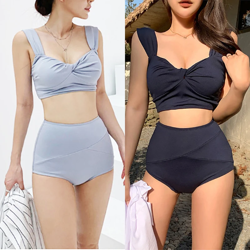 Женский раздельный купальник, однотонный комплект бикини с V-образным вырезом, трусики с чашками пуш-ап, летняя пляжная одежда для плавания, лето 2021