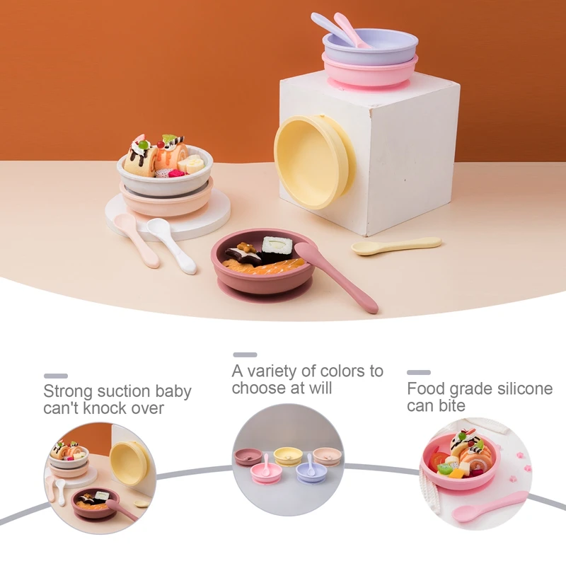 Миски для кормления детей Обучающие блюда присоска с деревянной ложкой Нескользящая первая сцена само портативная силиконовая посуда для младенцев