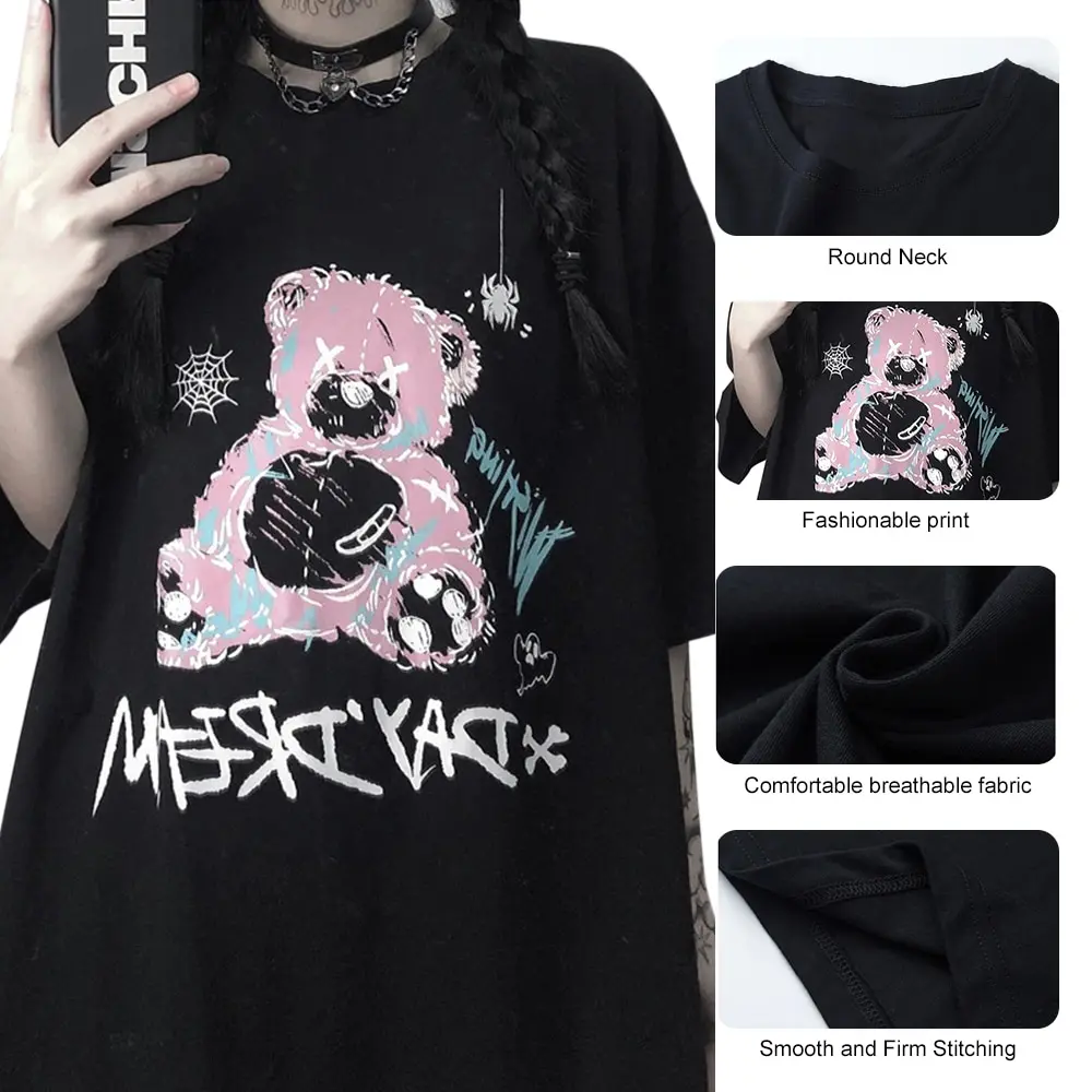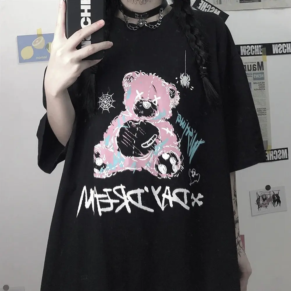 Футболка женская оверсайз с рисунком маленького медведя, Готическая...