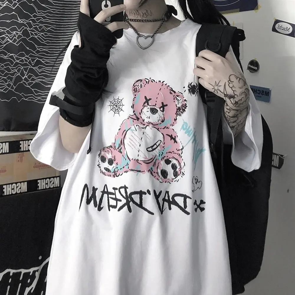 Лидер продаж, летняя женская уличная одежда с принтом медведя, Повседневная Готическая женская футболка, милые топы, футболка унисекс с коротким рукавом, аниме, хип-хоп