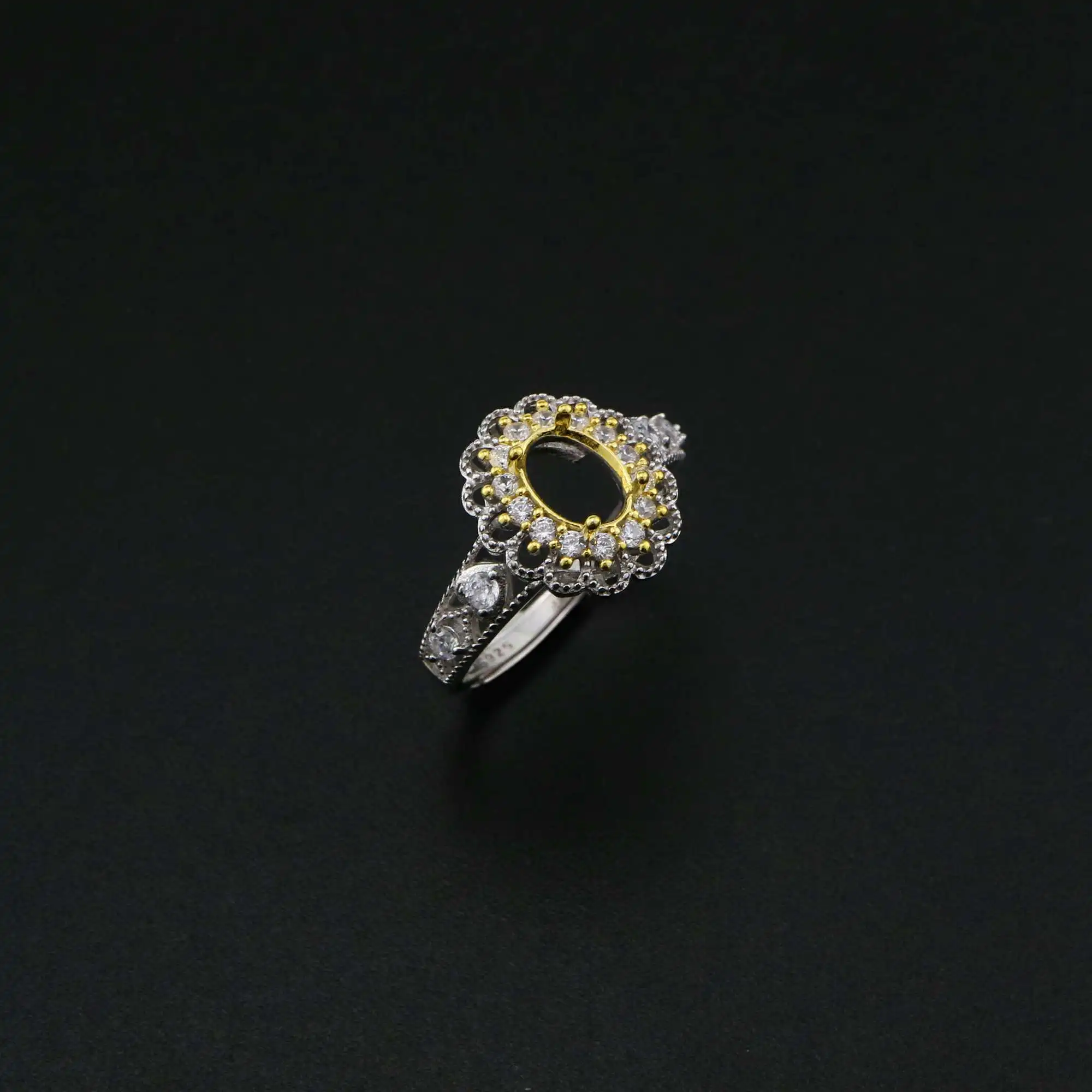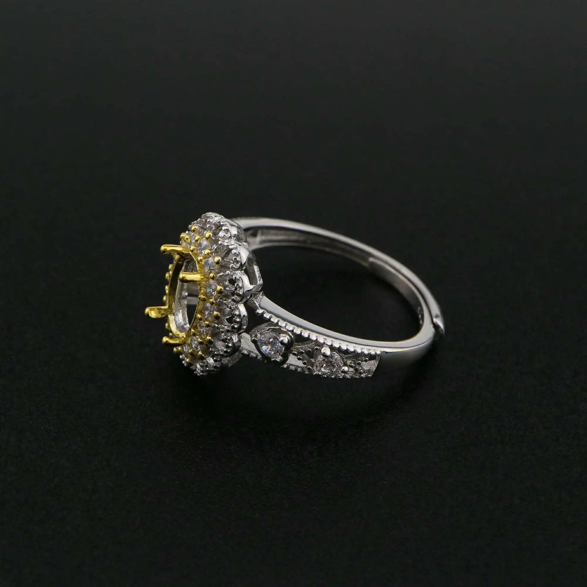 5x7 мм Овальный зубец параметры заготовки кольца пустой регулирующим шнурком Винтаж Стиль Позолоченные твердый 925 пробы серебра DIY 1222038