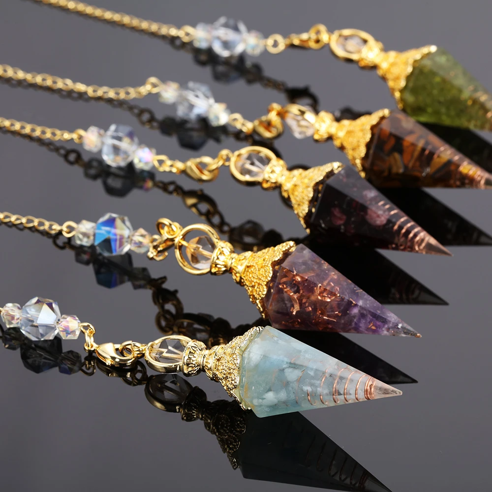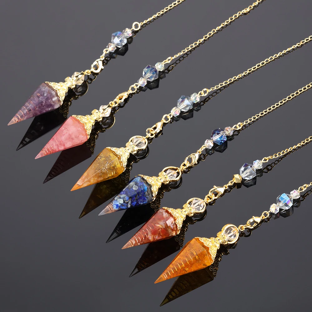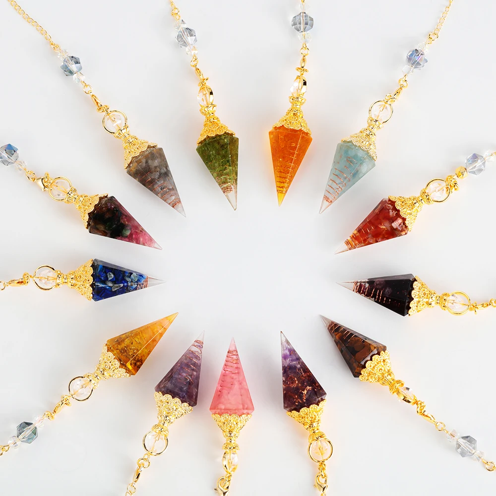 Подвеска в виде каменного маятника из натурального кристалла шестиугольная рейки Йога Пирамида смола подвеска цепь амулет для приданого маятника камень ремесло