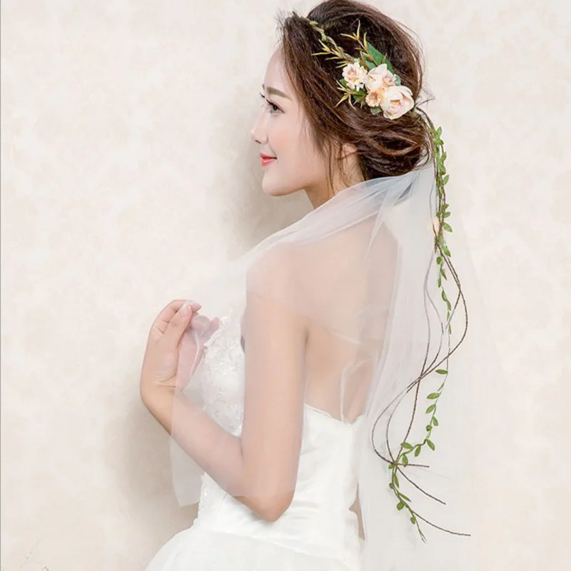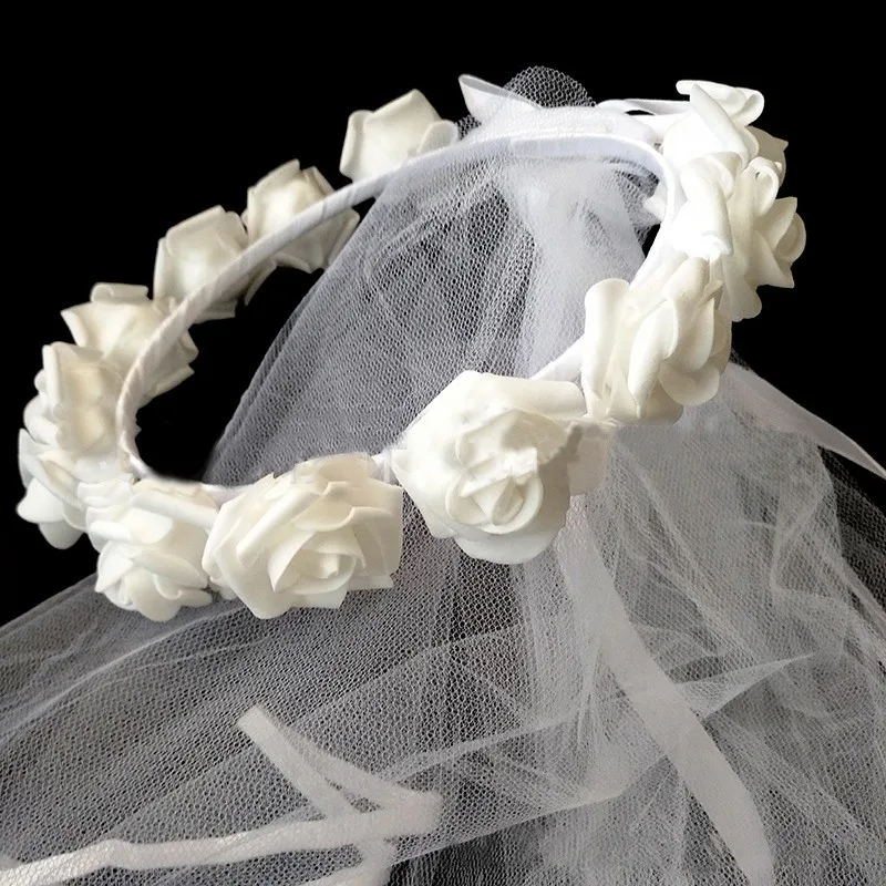 Женский свадебный венок с вуалью, белый цветочный венок, свадебная ...