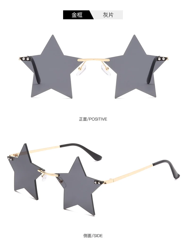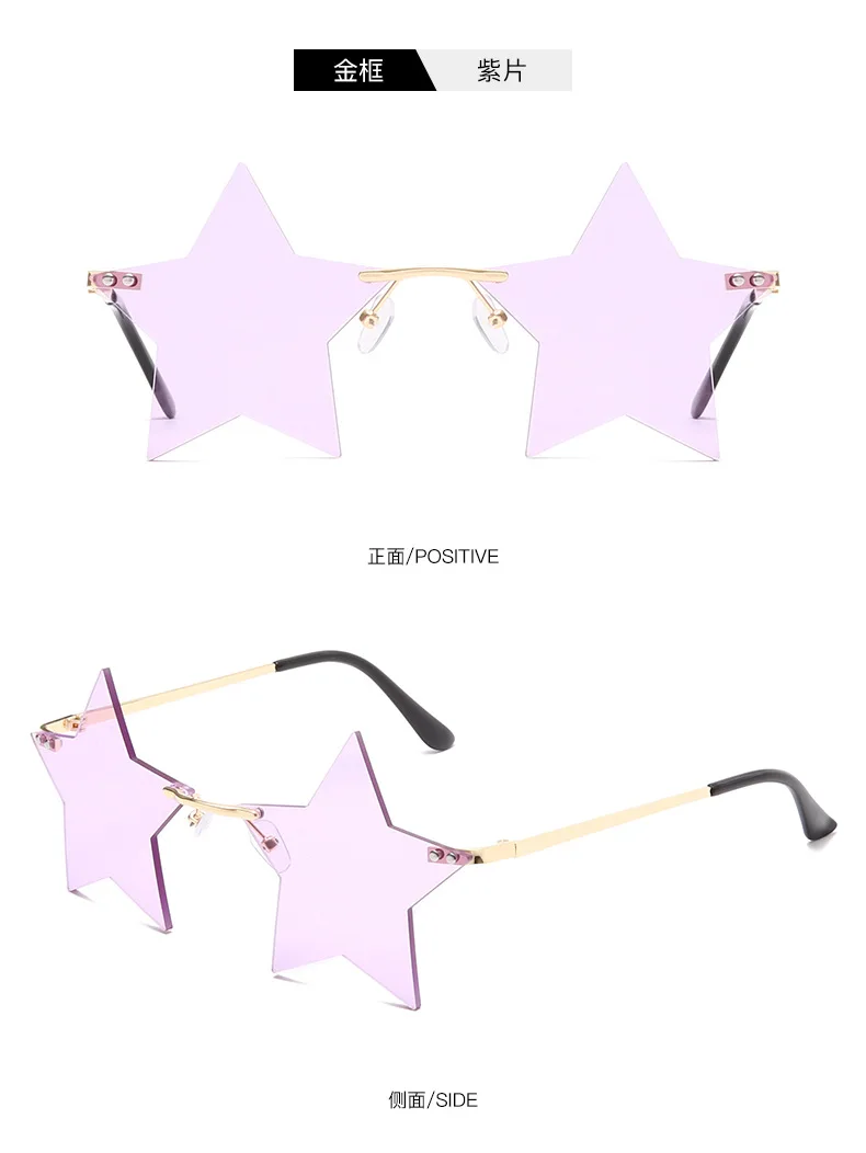 Женские солнцезащитные очки без оправы, в стиле INS, с украшением в виде звезд, для косплея, шоу, Интернет-знаменитостей