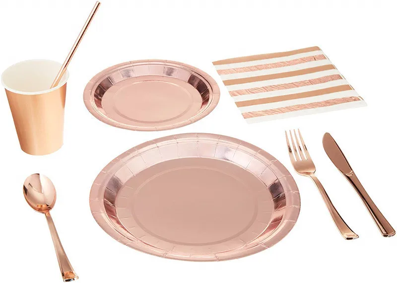 Одноразовая посуда из розового золота с горячим тиснением, тарелка ...