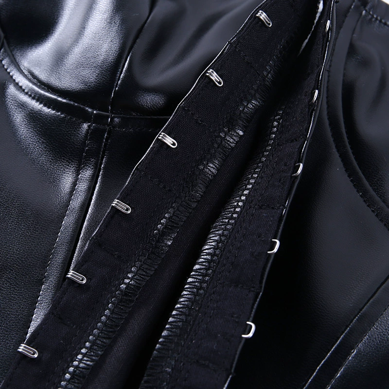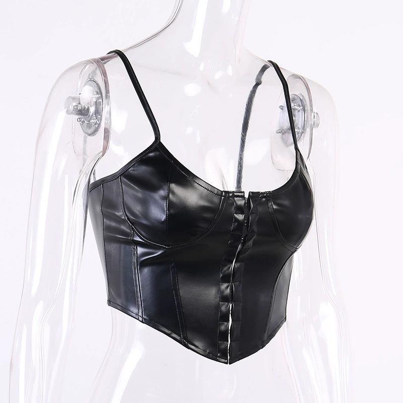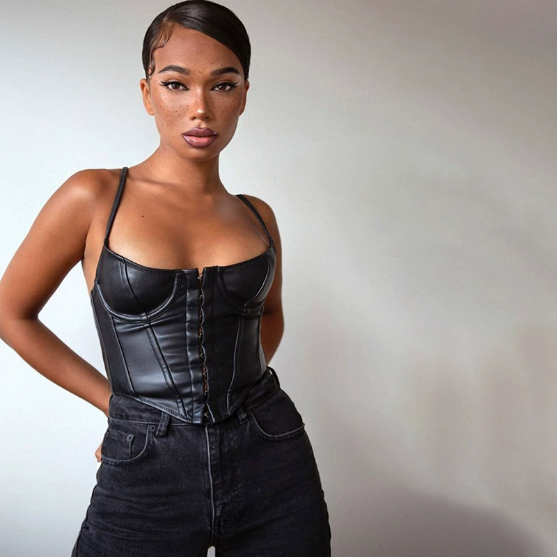 Женский корсет COIGARSAM, сексуальный Бюстье с низким вырезом, укороченный топ из искусственной кожи на бретельках в стиле панк, вечерние наряды, Повседневная Уличная одежда