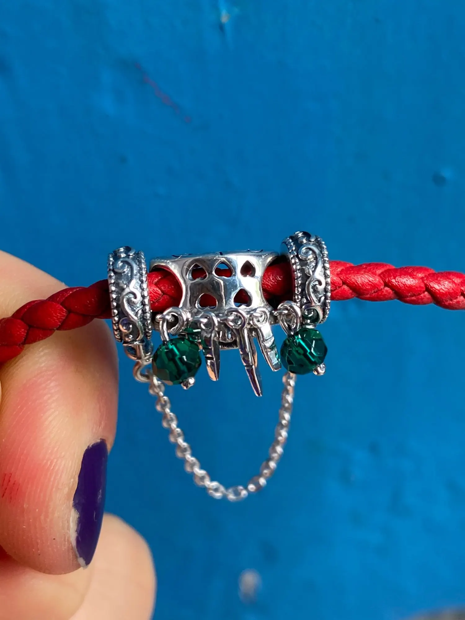 Красиво, все драгоценные камни вставлены, поэтому вы не потеряете их. Очень хорошо сделано, проблема только в том, что если он находится на браслете с несколькими подвесками, вам нужны резиновые пробки для стабилизации, он наклоняется вперед без них.