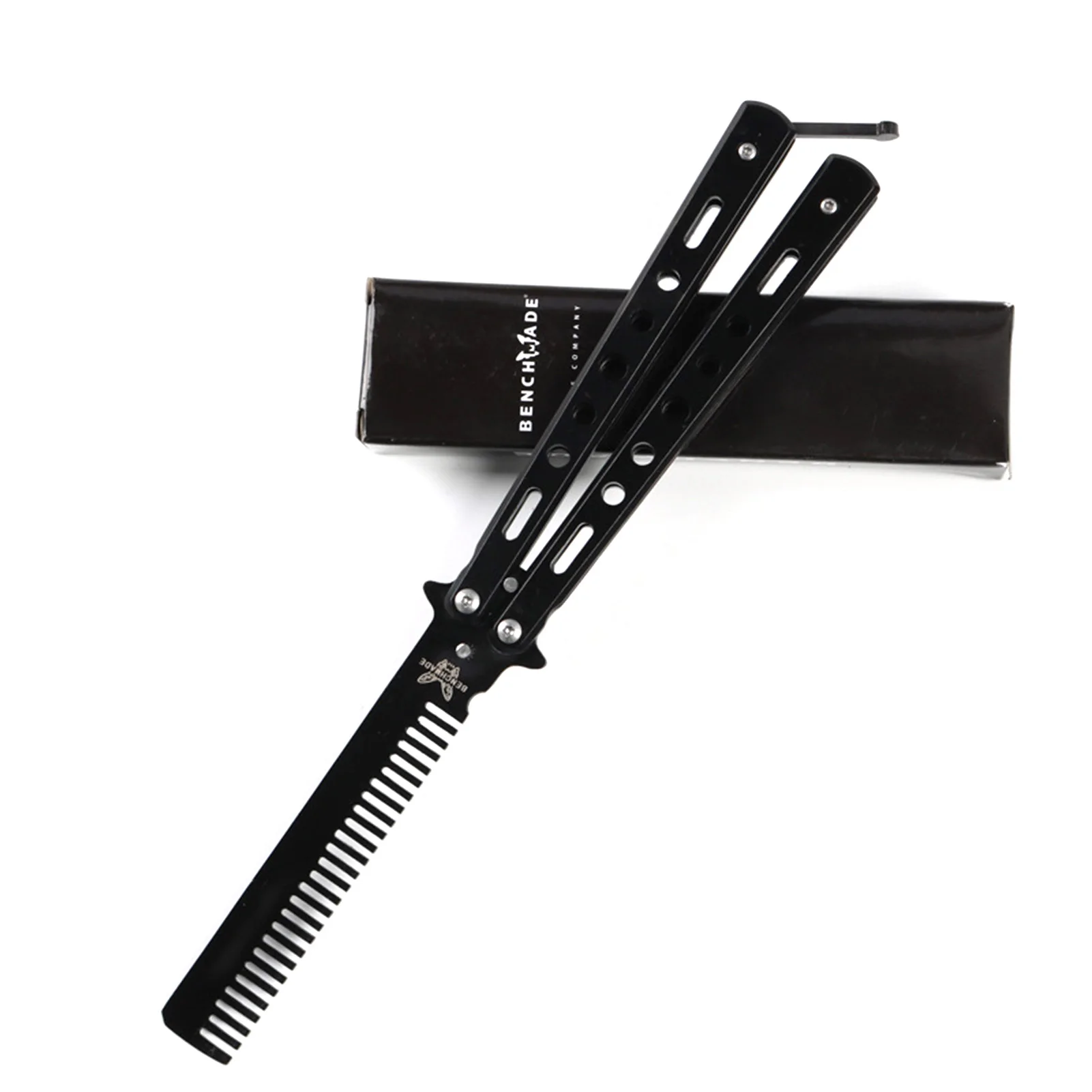 Складной тренировочный нож из нержавеющей стали в стиле бабочки, расческа для волос, инструменты для укладки, черный/серебристый, крутая Складная расческа
