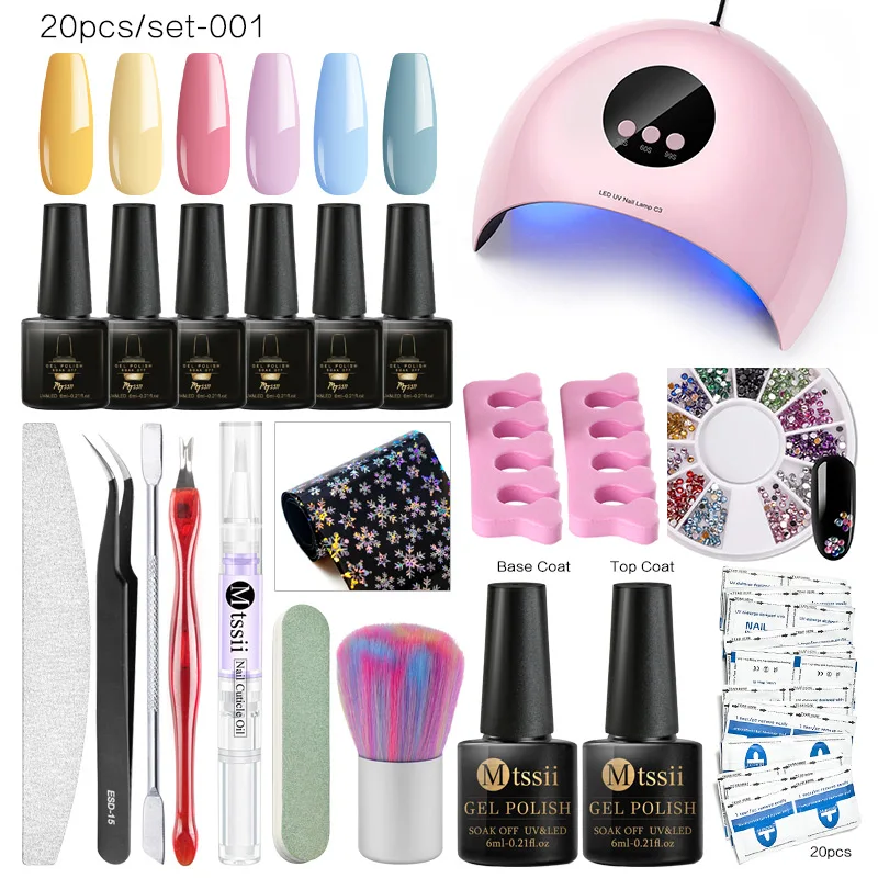 Набор для ногтей MTSSII 36 Вт УФ светодиодсветодиодный лампа Сушилка Маникюр 20 шт. чистый Гель-лак для ногтей кристальный блеск Стразы 3D Наклейка Дизайн ногтей Solan
