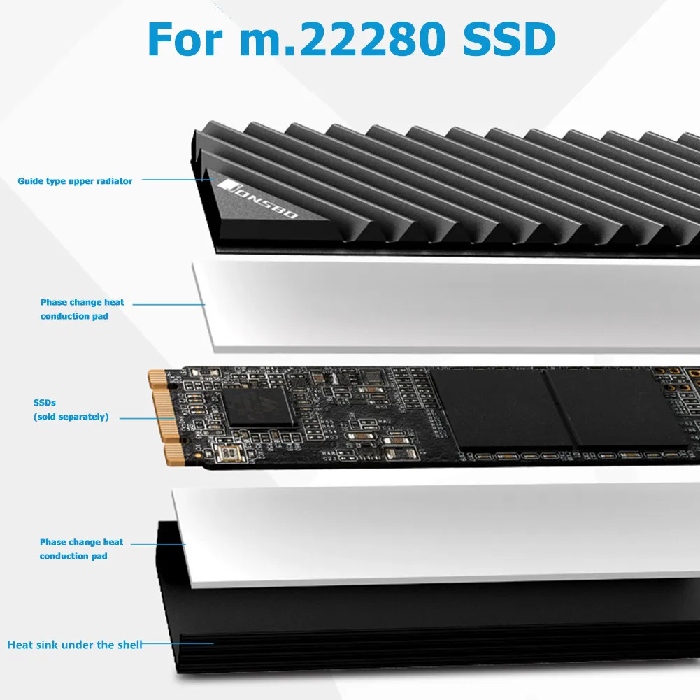 Радиатор M.2 2280 NVMe, радиатор, твердотельный накопитель для жесткого диска, охлаждающая подушка, радиатор для рассеивания, алюминиевая термопрокладка, аксессуары для ПК