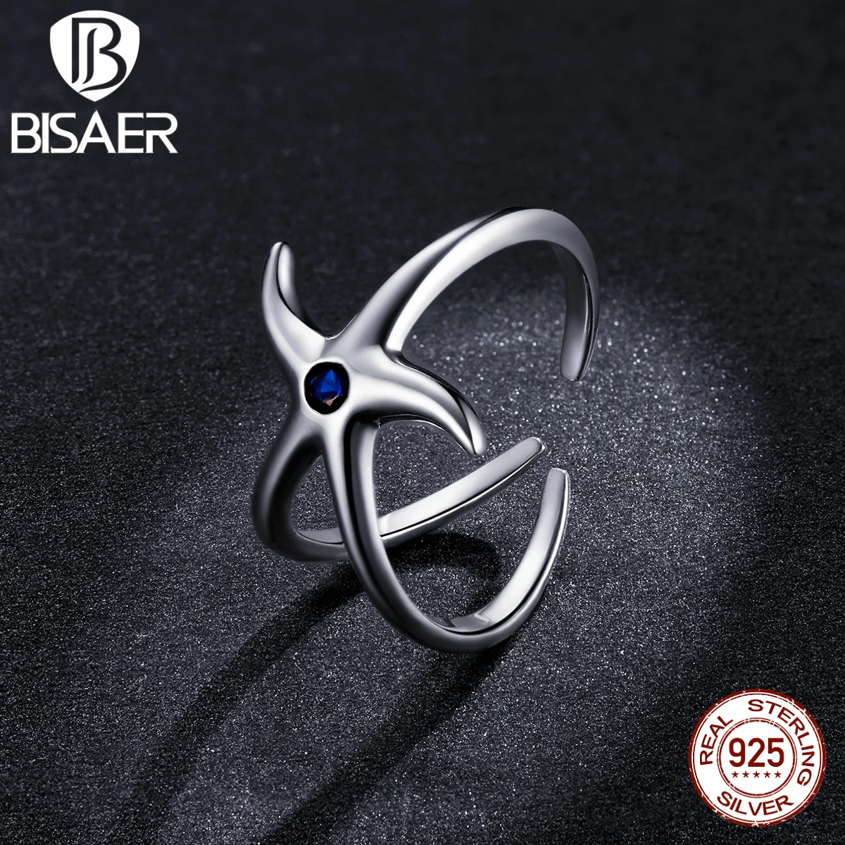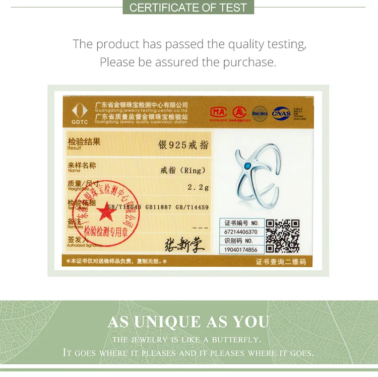 Женское Открытое кольцо из серебра 100% пробы, с фианитом
