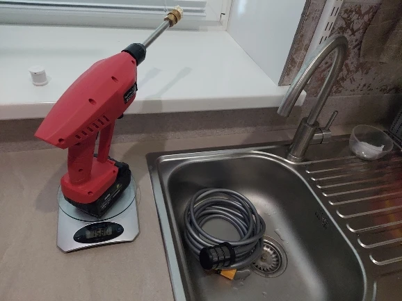 Доставка курьером. Вес 1,5 кг после работы. Первый запуск ждал долго когда вода пойдёт. Отключился, видимо от перегрева после минуты жужжания. Опустил входной потрубок пистолета в полную кружку воды, после попадания в него воды работать стал нормвльно. Продавцу благодарность!!!