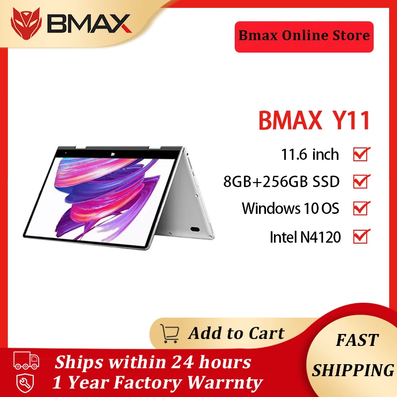 Ноутбук BMAX Y11, 1920*1080, IPS экран, 11,6 дюйма, четырехъядерный процессор Intel N4120, ноутбук на базе Windows 10, 8 Гб LPDDR4, ОЗУ 256 ГБ, SSD, ПЗУ