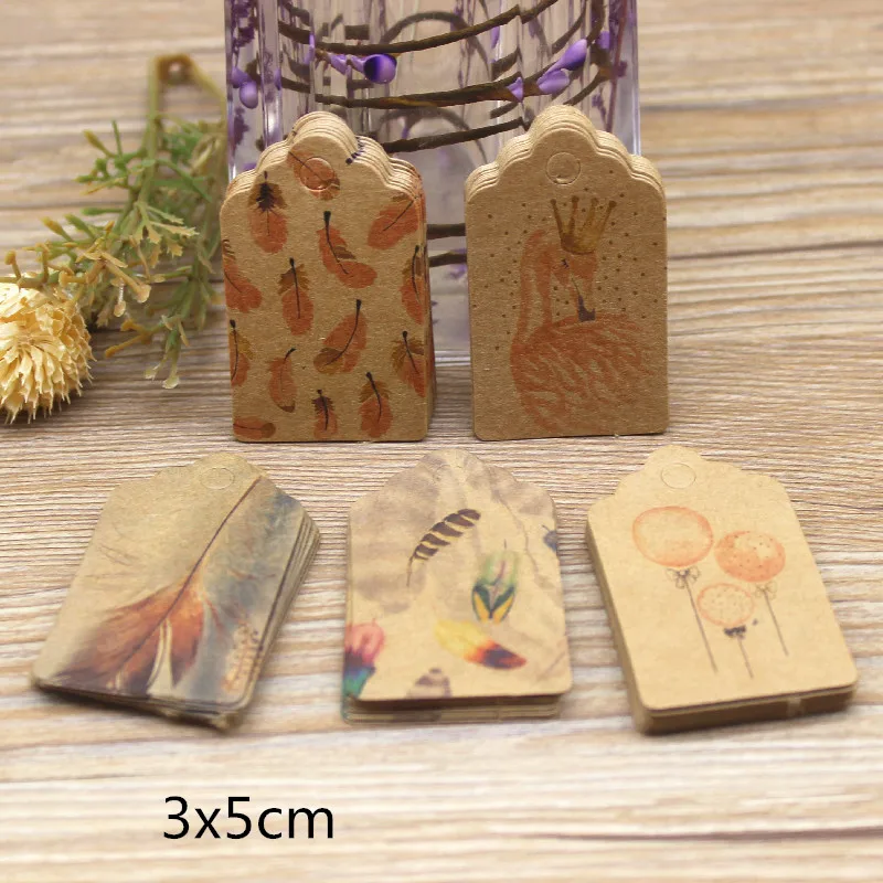 100 шт., винтажные подарки из крафт-пластика, подарки для свадьбы, конфетные сувениры, бирка для вывешивания, этикетка 5*3 см, перышки, подарки, украшения, бирка для вывешивания, вечерние бирки