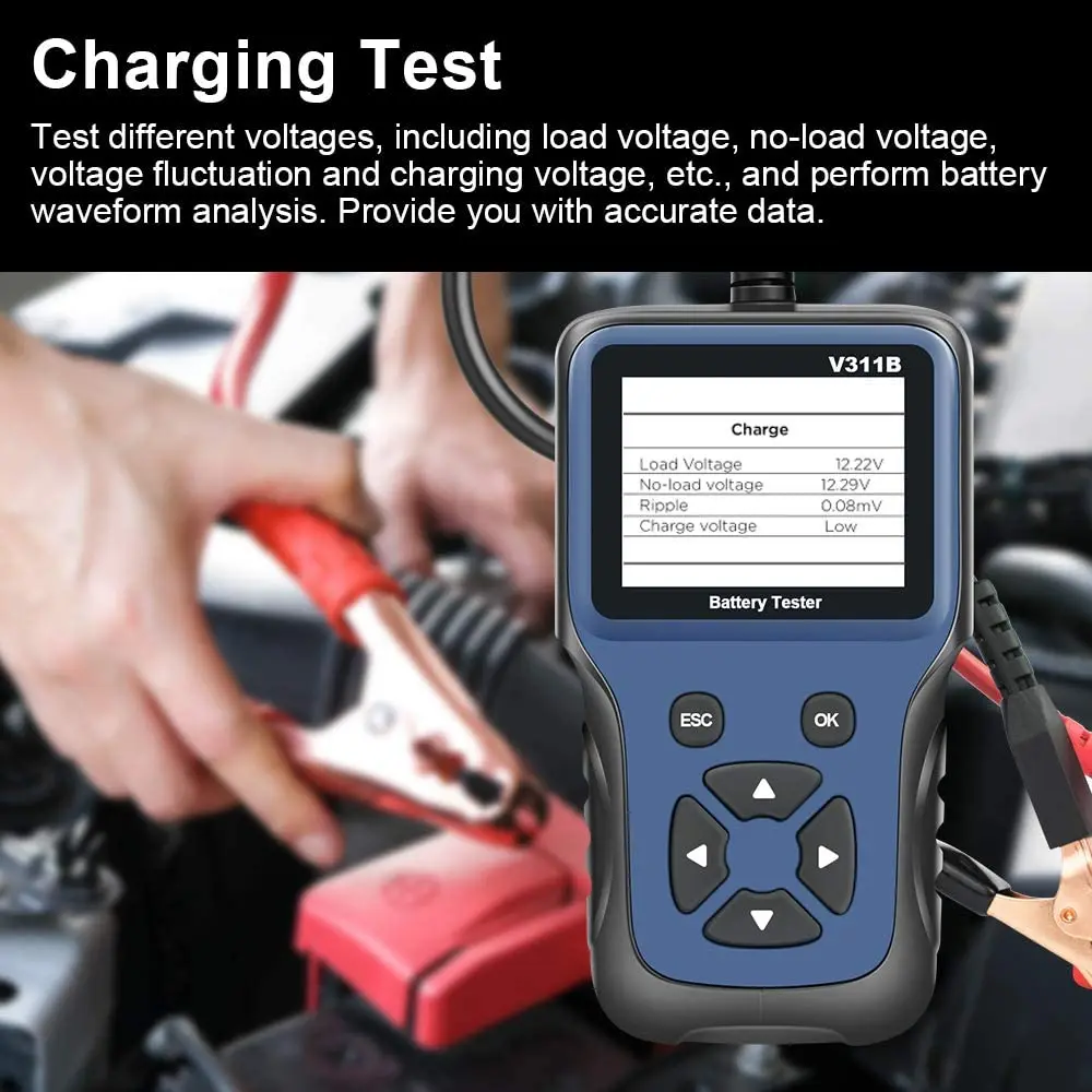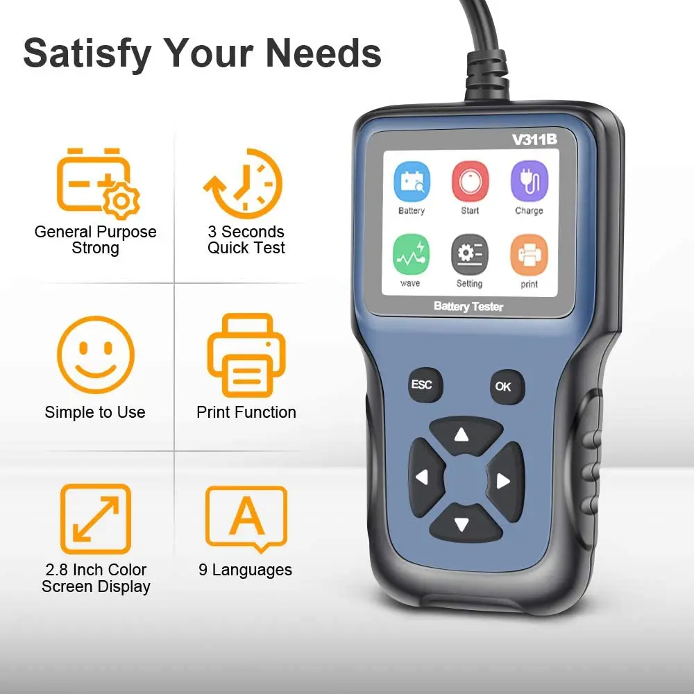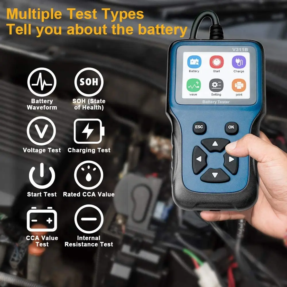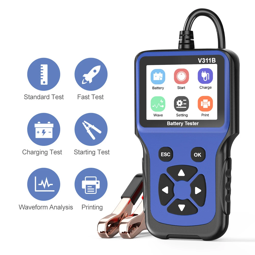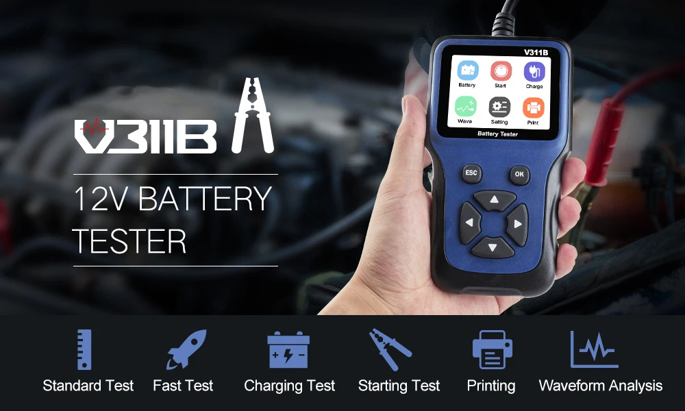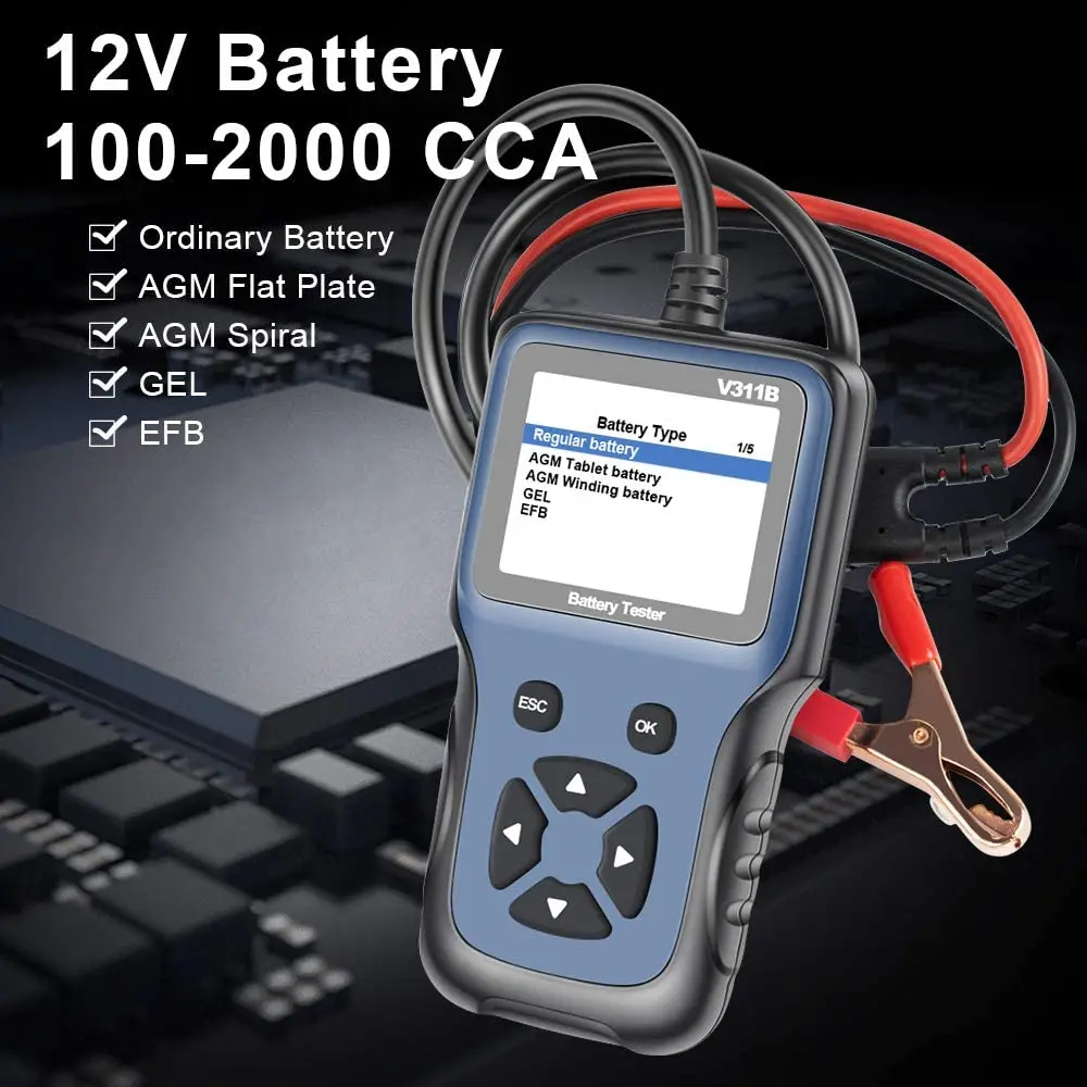 Тестер автомобильного аккумулятора V311B, 12 Вольт, анализатор аккумулятора, автомобильный диагностический инструмент, 100-2000CCA, многоязычный автомобильный диагностический инструмент