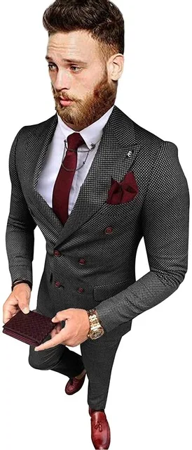 Мужские деловые костюмы из 2 предметов, клетчатые шерстяные двубортные приталенные смокинги с отложным воротником с вырезом, свадебная одежда, блейзер + брюки