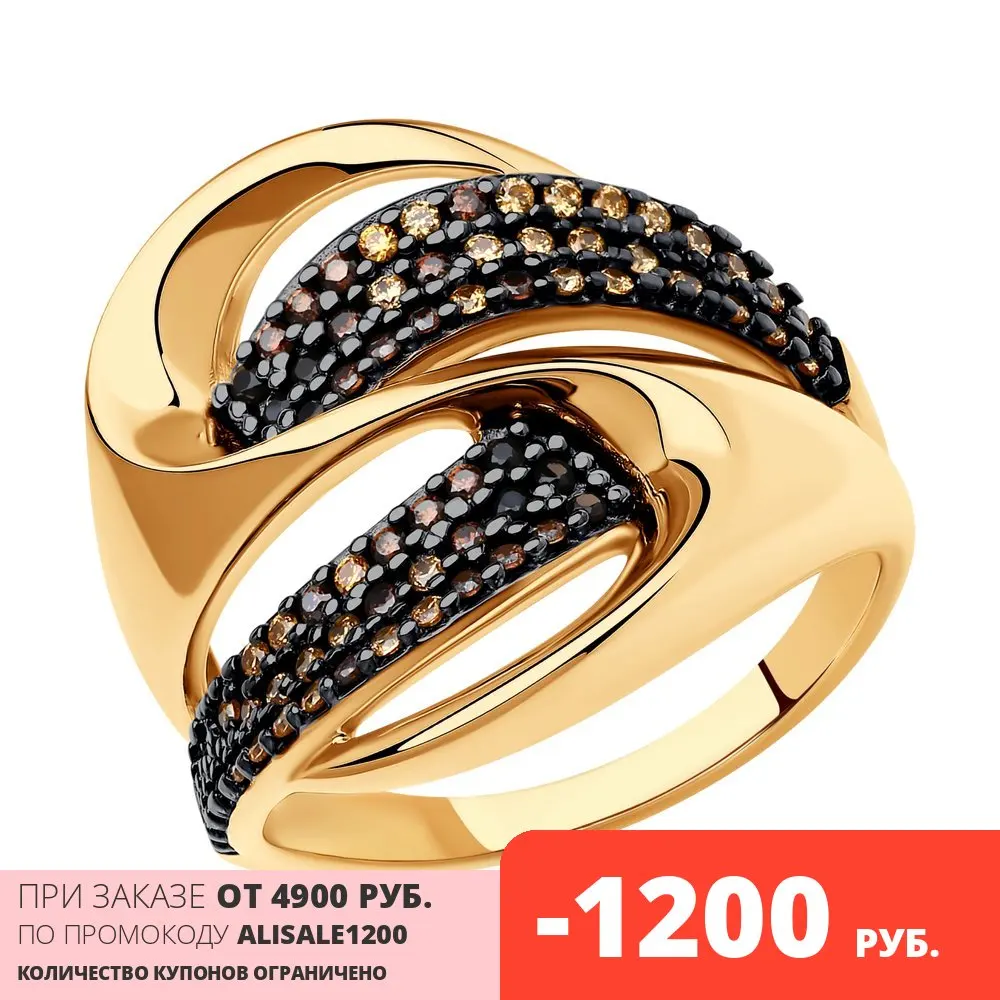 Кольцо SOKOLOV из золочёного серебра с фианитами, Серебро, 925, Женское, Оригинальная продукция