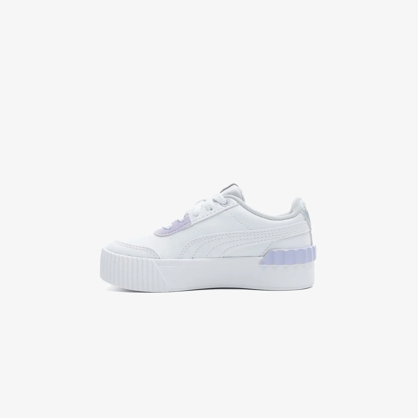 Puma Carina Lift Shine ayakkabi sade renk bloklamayi renkli detaylarla birleshtiriyor. Suni deri üst yüzey ve kalyn dıtaban, rahat gürumnünülar tamyray't