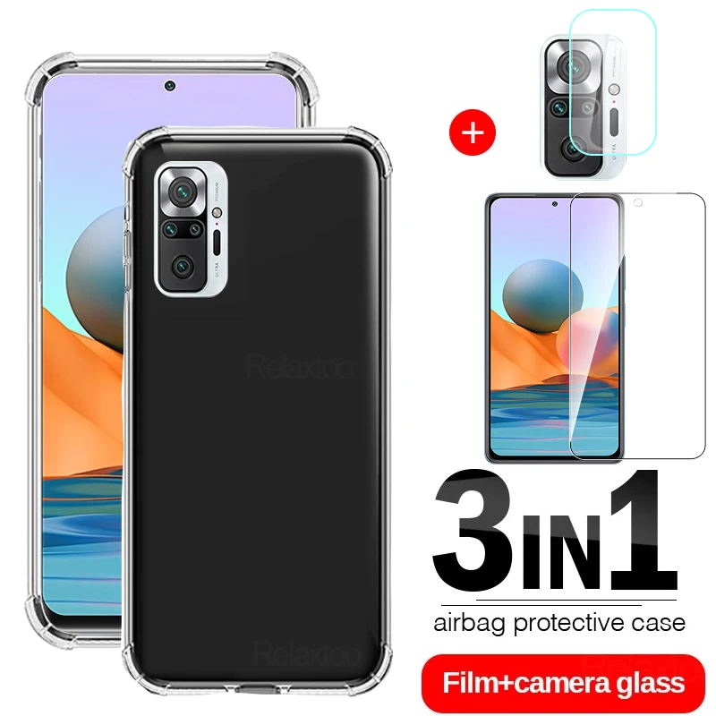 Силиконовые чехлы 3-в-1 для Xiaomi redmi note 10, защитное закаленное стекло для камеры, Защита экрана для Xiaomi redmi note 8T Pro