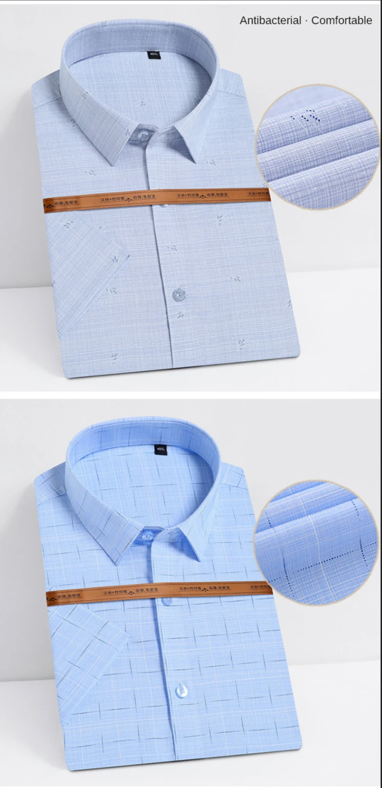 Рубашка мужская с коротким рукавом, дышащая Гавайская Повседневная сорочка с бамбуковой вискозой, на пуговицах, приталенный силуэт, зеленая фиолетовая