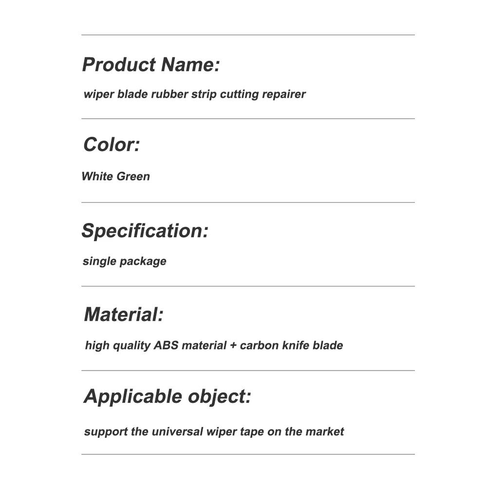Описание товара: Благодаря Бритвенно-острым лезвиям, нож для стеклоочистителя точно отрезает поврежденную резину стеклоочистителя всего за 3 секунды и возвращает форму стеклоочистителя с острыми краями. Таким образом, ваши щетки стеклоочистителя снова выглядят как новые, что позволяет щеткам стеклоочистителя снова очистить и доставить новую швабру. Особенности: 1. Экономия средств и времени 2. Для стеклоочистителей всех брендов 3. Продлевает срок службы стеклоочистителя 4. Высококачественная обработка 5. Эргономичная и устойчивая к порезам ручка 6. Лезвие с особым покрытием Характеристики изделия Размер: 40*64*36 мм Название продукта: очиститель Резиновой полосы Цвет: белый, зеленый Спецификация: одна посылка Материал: высококачественный АБС-пластик + лезвие нож из углеродной стали Применимый объект: Поддержка универсальной ленты дворника на рынке Посылка 1 х нож для стеклоочистителя1 х Чистящая губка