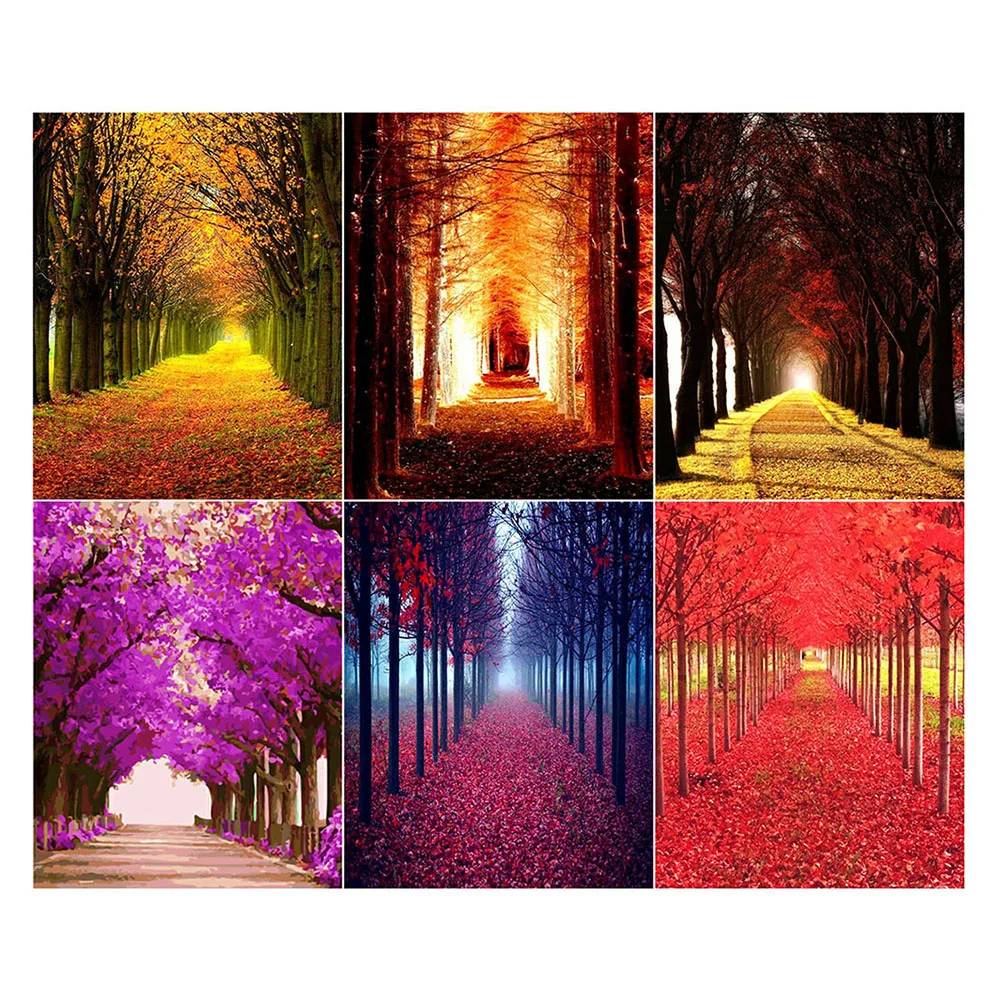 LZAIQIZG 5D алмаз Картины в дерева тропинки камни в форме ромбаНабор для рисования с круглыми камнями и полотном с вышивкой живописные фотографии из Стразы домашний декор