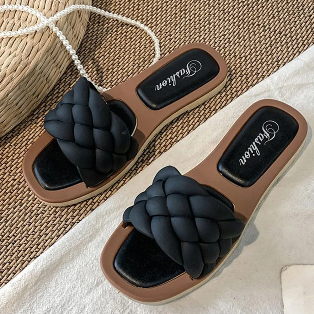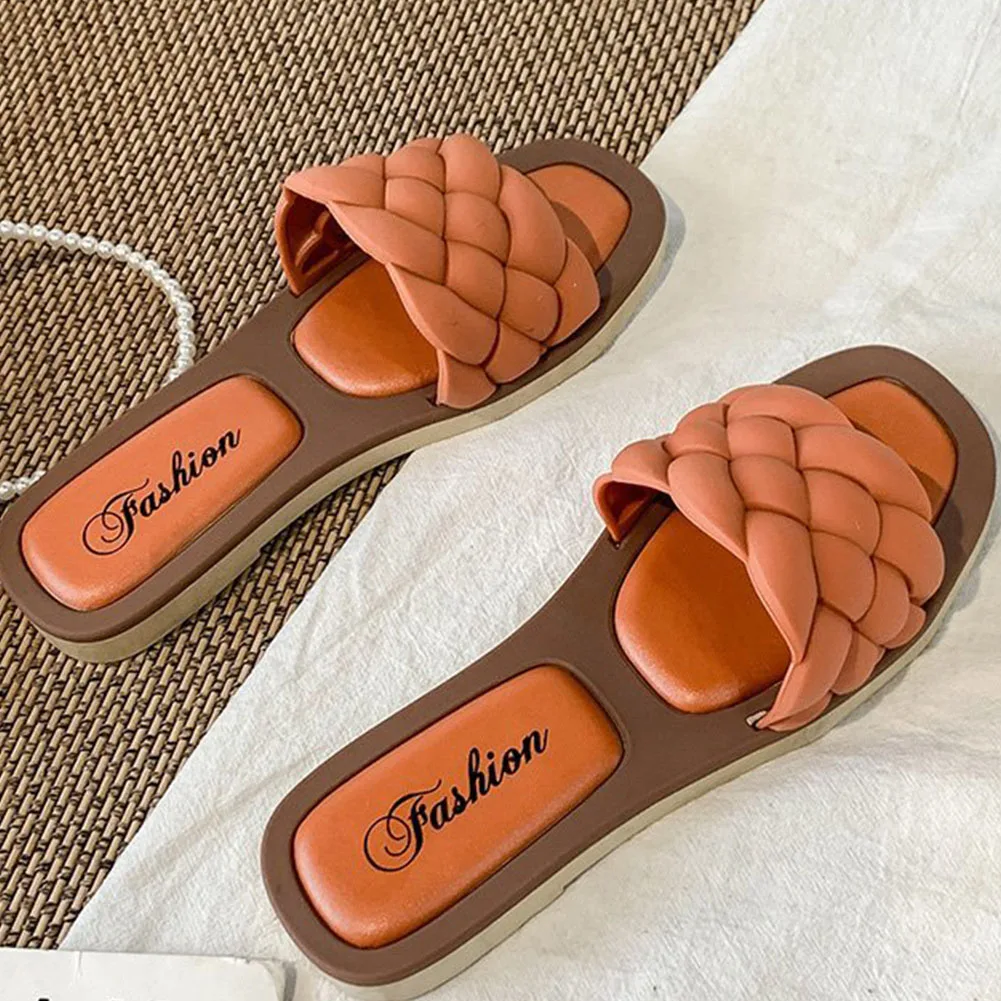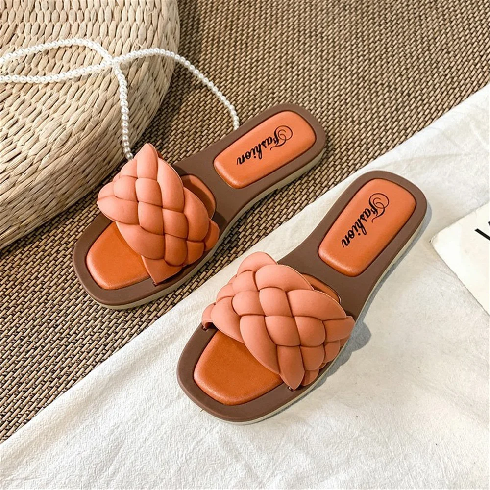 Сандалии женские плетеные, плоская подошва, модные босоножки, пляжн...