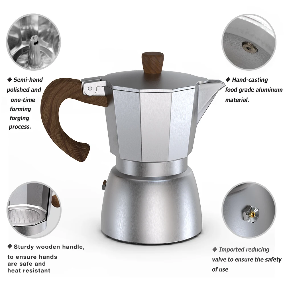 Алюминиевый кофейник для мокко, эспрессо, Перколятор, кофейник, домашняя уличная плита, инструменты для кафе, серебристый, красный, черный