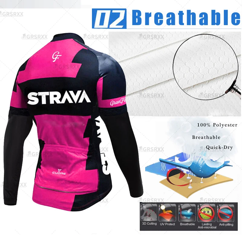 Женская велосипедная Джерси STRAVA, Весенняя велосипедная одежда с длинными рукавами, не скатывающаяся, осенняя рубашка, спортивная одежда для велосипедной команды