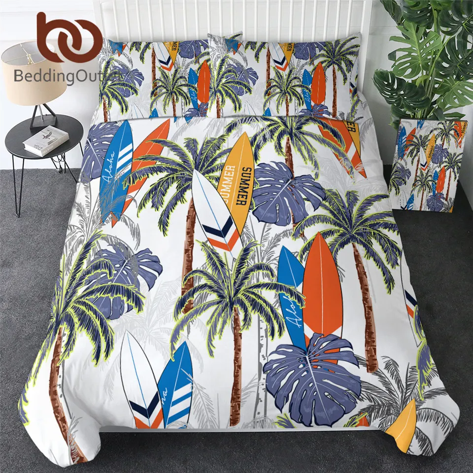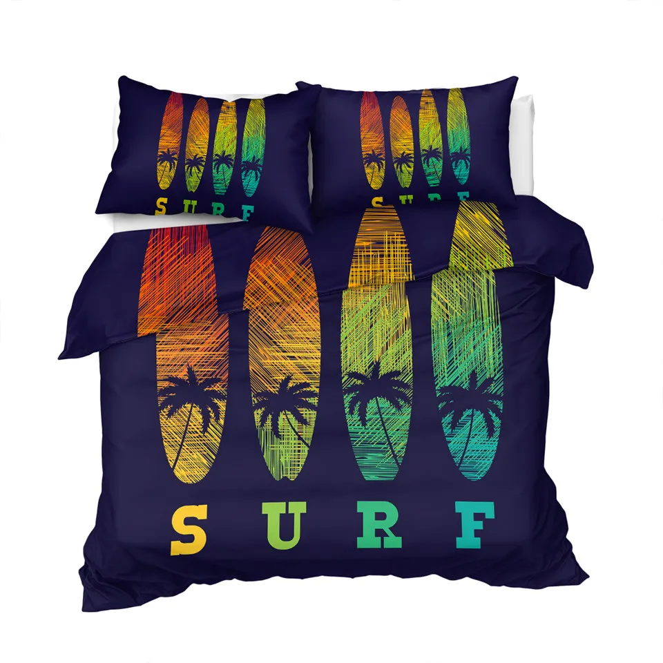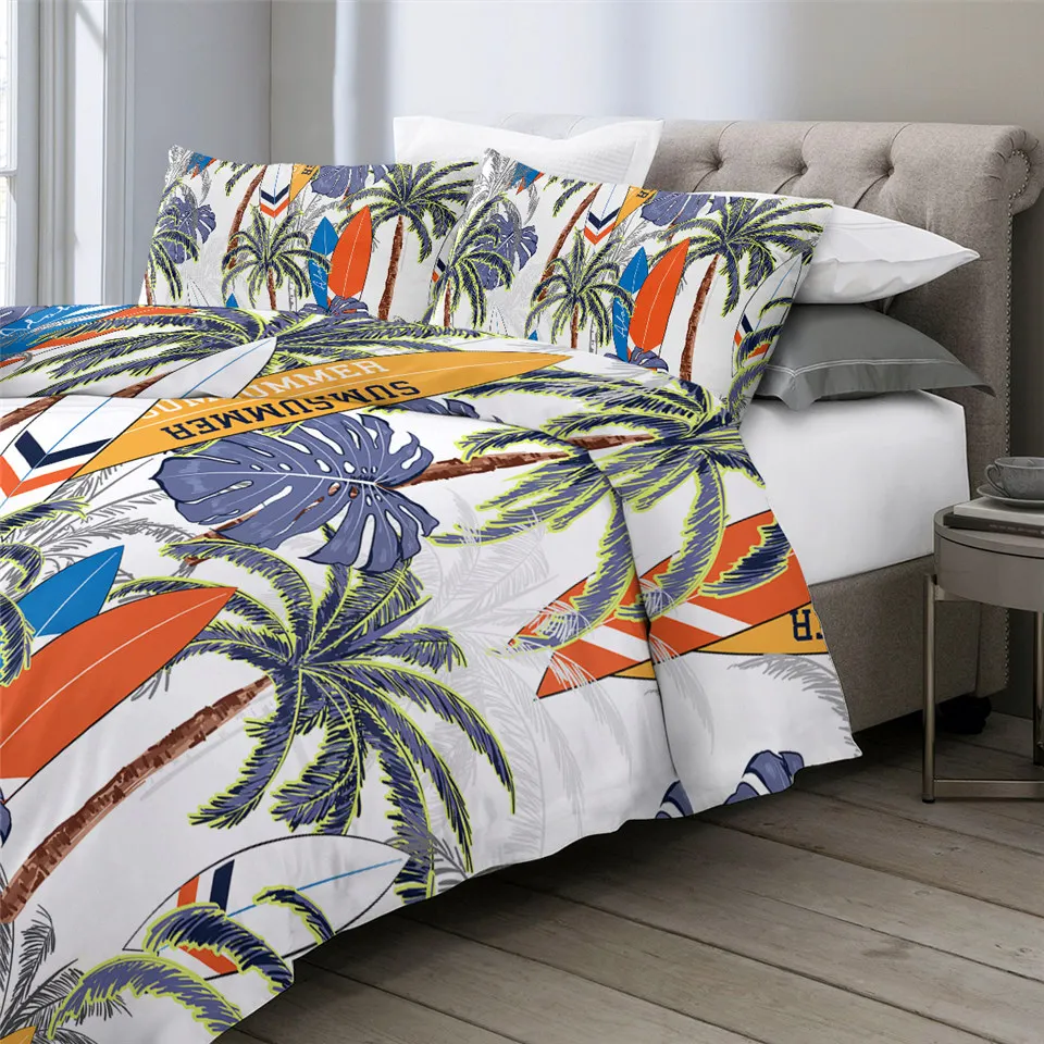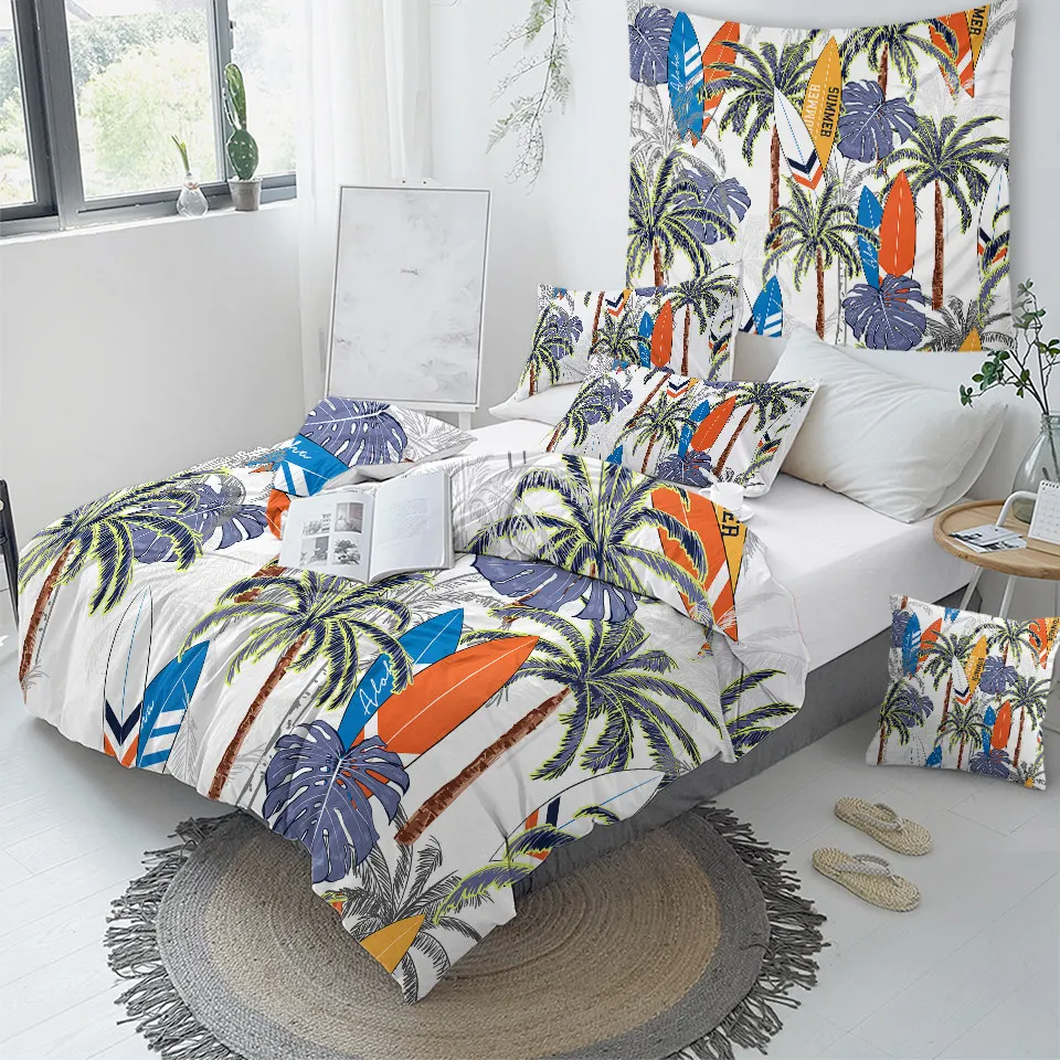 Постельные принадлежности для серфинга набор постельных принадлежностей кокосовое дерево пододеяльник тропические растения постельное белье море 3d печать красочные одеяла