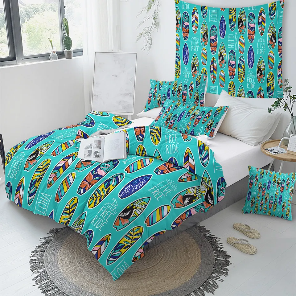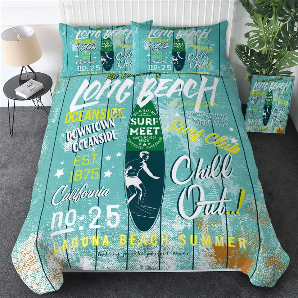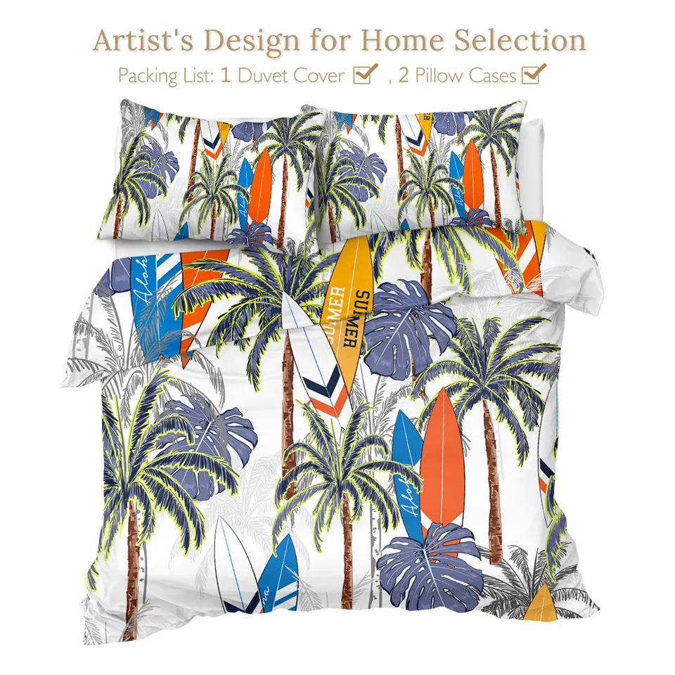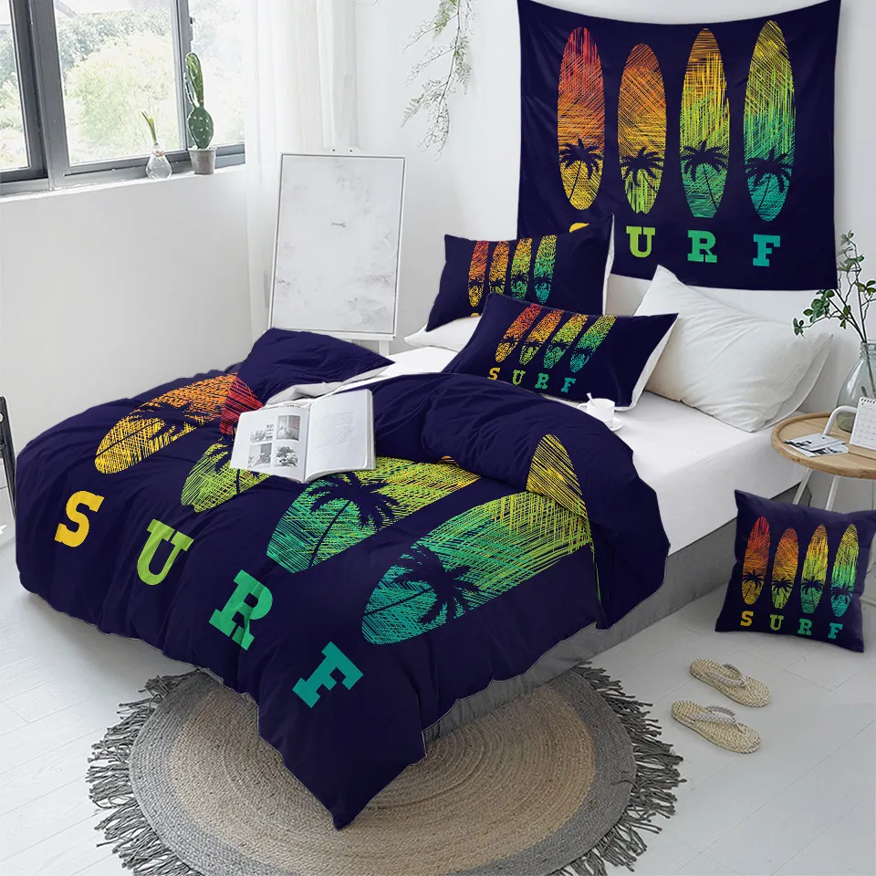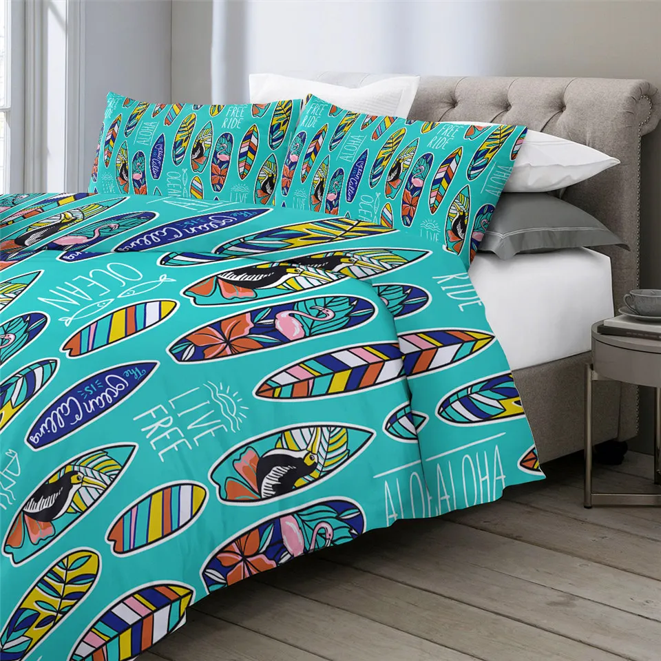 Постельные принадлежности для серфинга набор постельных принадлежностей кокосовое дерево пододеяльник тропические растения постельное белье море 3d печать красочные одеяла