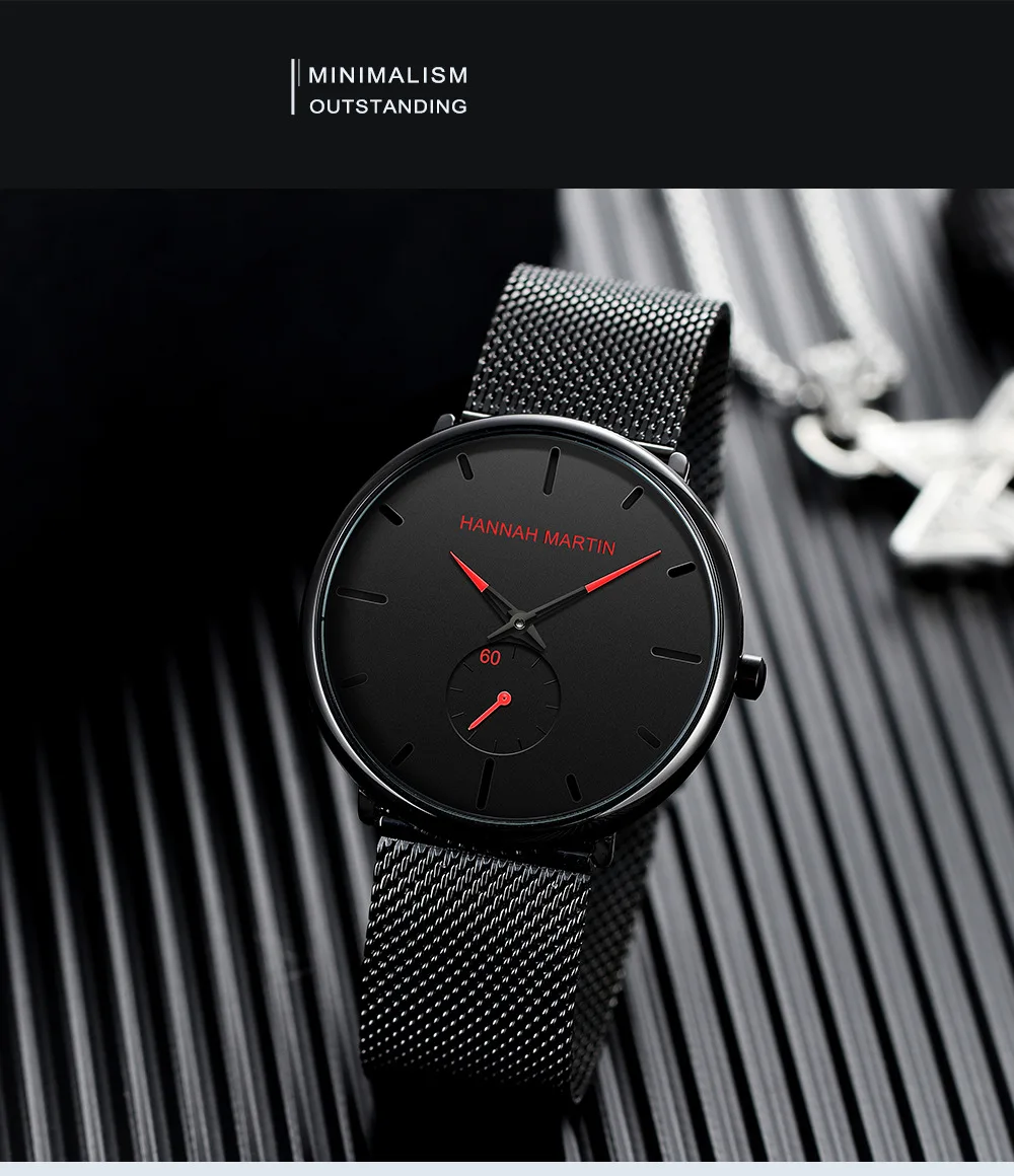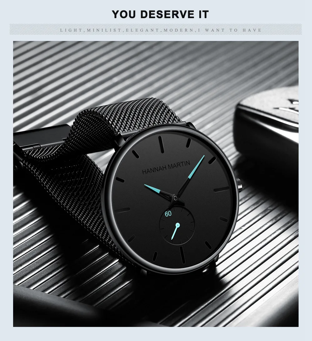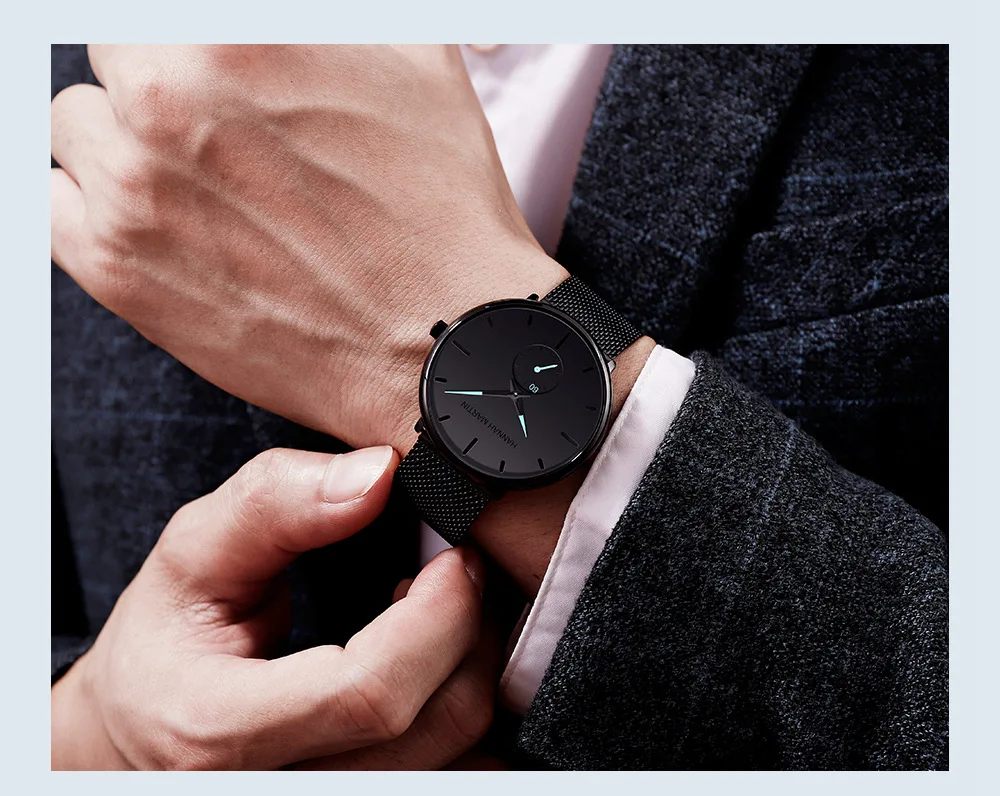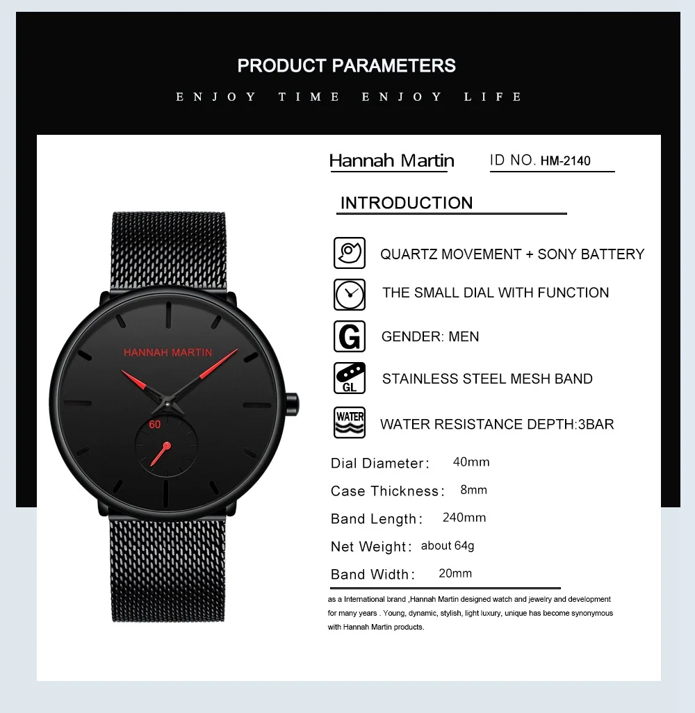 Hannah Martin HM-100G, модные, простые, дизайнерские, водонепроницаемые, нержавеющая сталь, сетка, маленький циферблат, мужские часы, мужские кварцевые наручные часы
