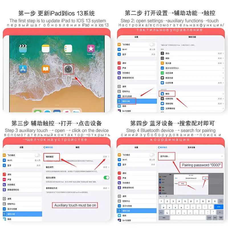 Шаги для подключения мыши к ipad: ① Первым шагом является обновление системы iPad до IOS 13 ② Открытая Настройка → вспомогательные функции → сенсорный экран ③ Вспомогательное касание → открытие → Нажмите на устройство ④ Устройство Bluetooth → поиск сопряжения