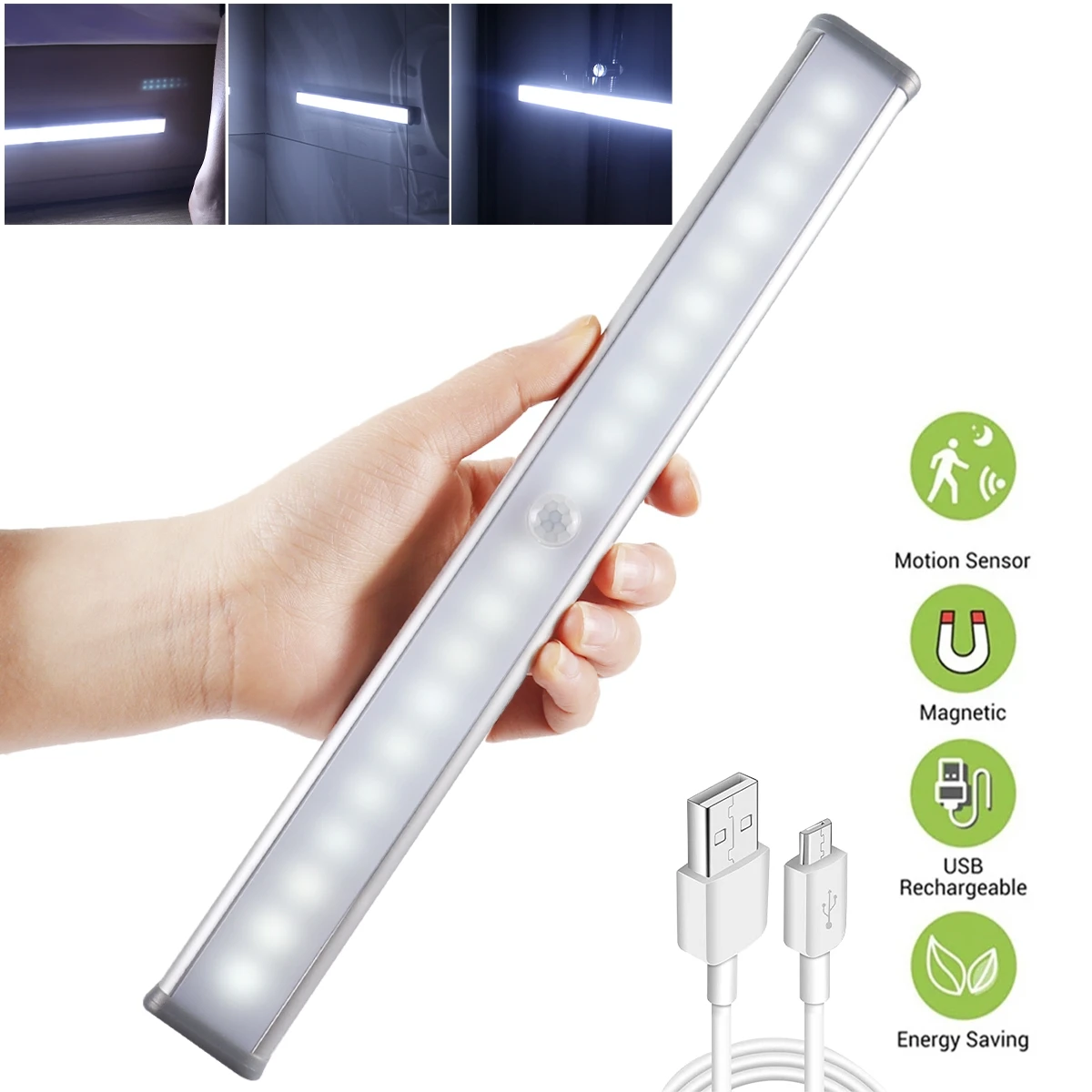 Портативный беспроводной светильник с пассивным инфракрасным датчиком движения, светодиодный ночсветильник с зарядкой через USB для шкафа, кухни, чулана, лестницы, лампа для декора спальни