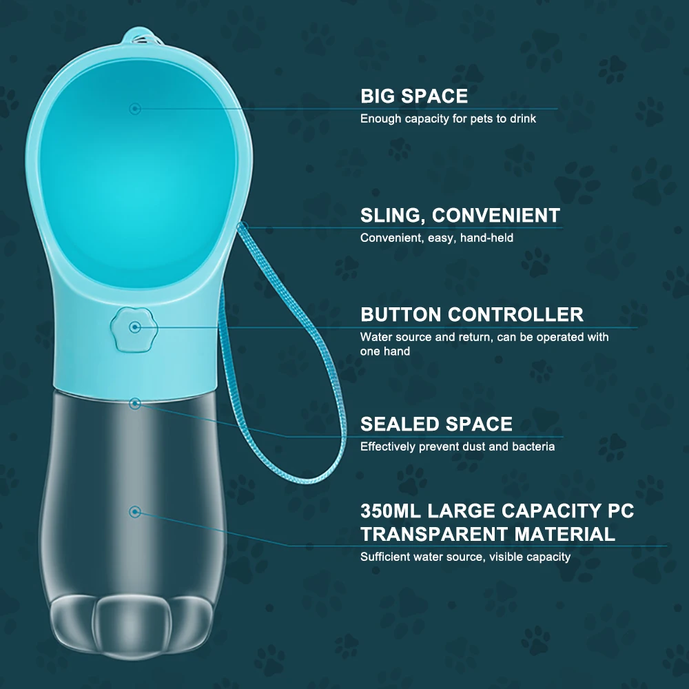 Эта бутылка нового стиля поставляется с хорошей раковиной, которая очень удобна для домашних животных, чтобы пить воду, идеально подходит для домашних животных.Вода попадет в раковину для лечения, нажав на замок бутылки, если вода не будет пить у питомца, вы можете держать бутылку и позволить воде течь в бутылку для питья позже, умный дизайн.Портативный и светильник-бутылочка, поэтому ваш питомец может пить чистую воду в любое время и в любом случае.Бутылка изготовлена из пищевого пластика wtih, безопасна и безопасна для ваших питомцев.Высококачественное уплотнительное Силиконовое кольцо запирает воду, поэтому он не промокает ваш мешок, когда вы его положите.