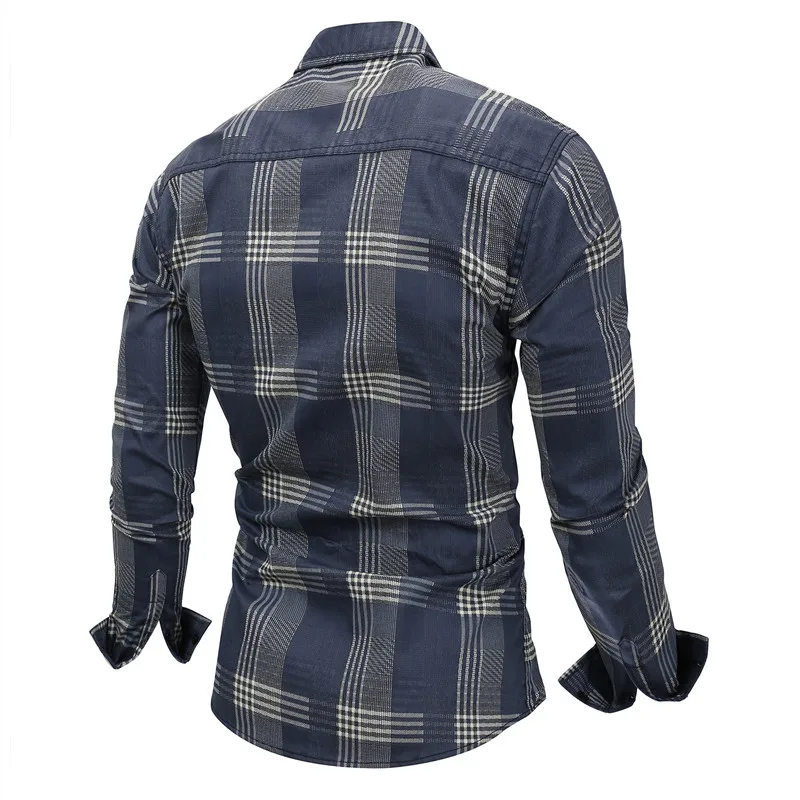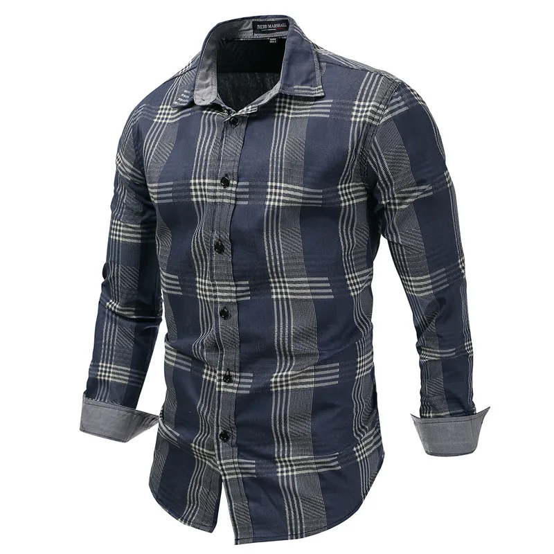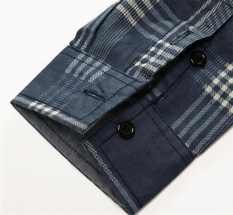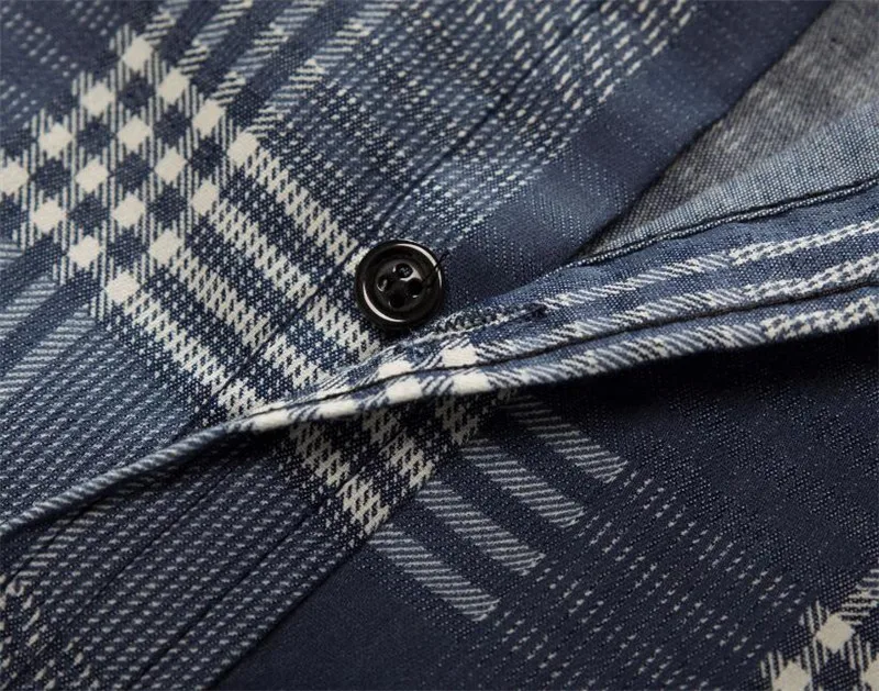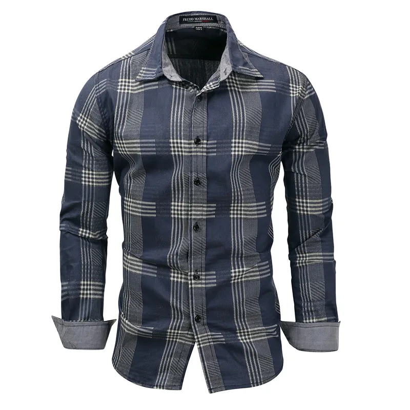 Джинсовая рубашка MORUANCLE Мужская, Повседневная модная джинсовая рубашка в клетку с длинным рукавом, размер M-XXXL, синий цвет