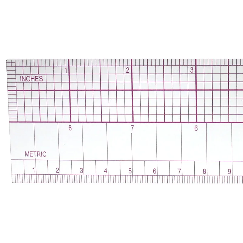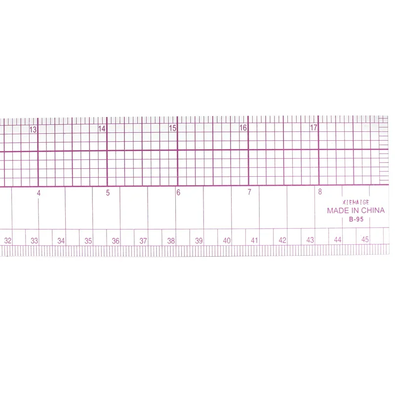 B95-метрическая и дюймовая косая сторона, прозрачная красная линия, один дюйм 8 дюймов на одной стороне, 16 дюймов на дюйм на кромке, средняя шкала. Метрические сантиметровые сетки с одной стороны и Миллиметровые сетки по краям. Используется для сравнения обратного кода. Имеет скошенные края для легкой печати, и линии скрыты внутри линейки для долговечности. 2 "x 18" (45 см), 1,2 мм толщиной